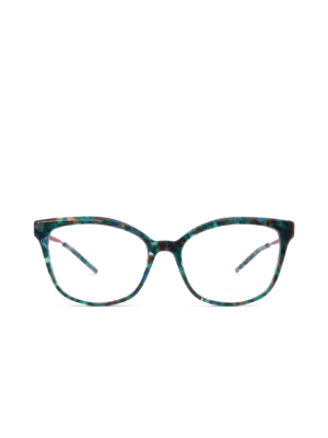 Armazón en color tortoise-verde con magenta, hecho a mano en Italia.