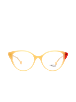 Armazón en color amarillo con detalle en color rojo, hecho a mano en Italia.