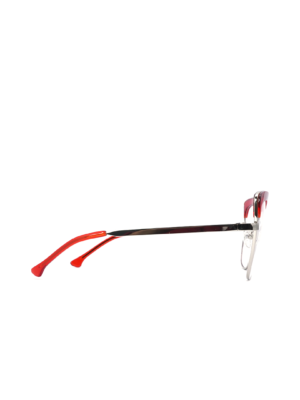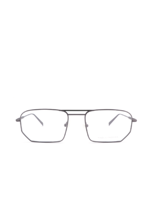 Armazón con puente doble y marco estilizado en color plata, hecho a mano en Italia.