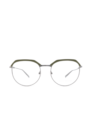Armazón estilizado con lente circular en color verde, hecho a mano en Italia.