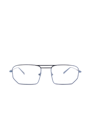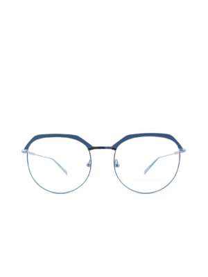 Armazón con puente doble y marco estilizado en color azul, hecho a mano en Italia.