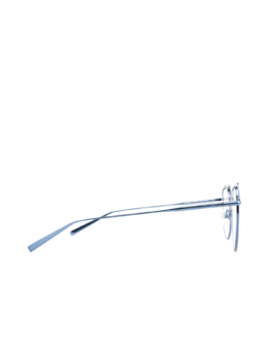 Armazón estilizado con lente circular en color azul, hecho a mano en Italia.