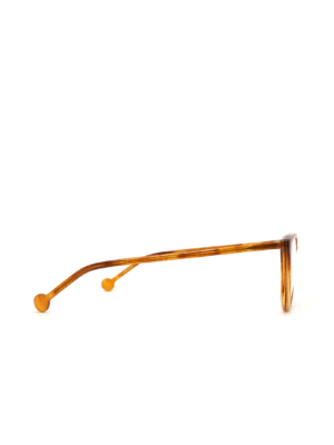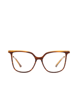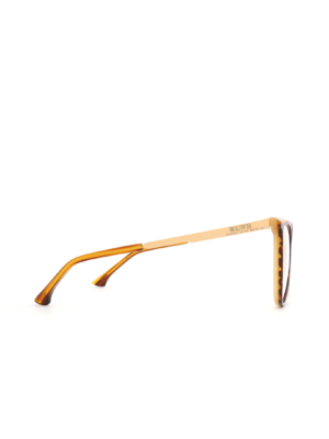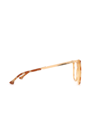 $1,549.00Armazón tipo “cat eye” en color tortoise-café con amarillo, detalle rosa y puente dorado, hecho a mano en Italia.