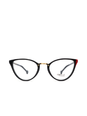 $1,549.00Armazón tipo “cat eye” en color negro con detalle rojo y puente dorado, hecho a mano en Italia.