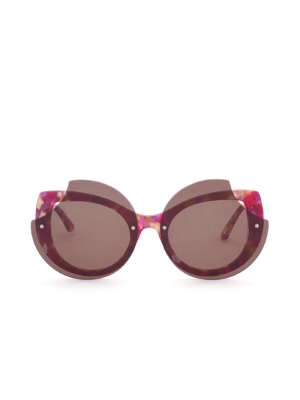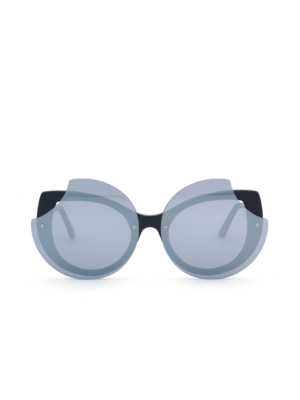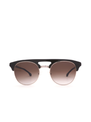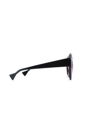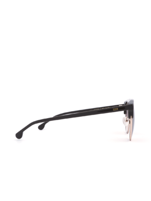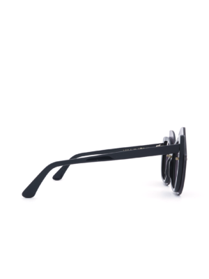 Lentes de sol en color negro, con lente café oscuro circular, hecho a mano en Italia.