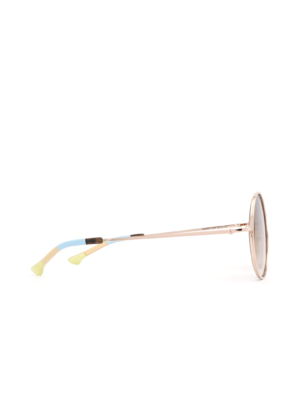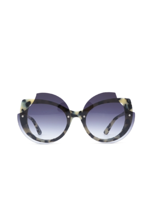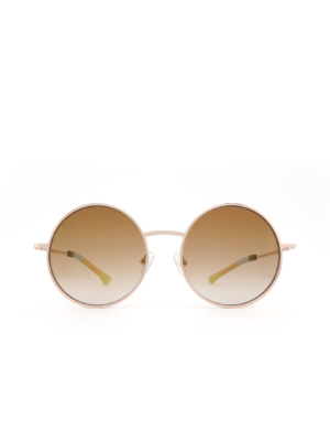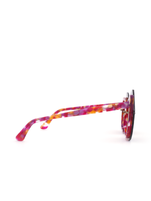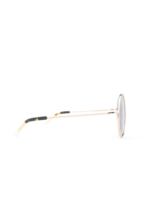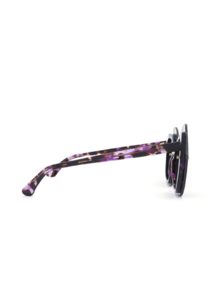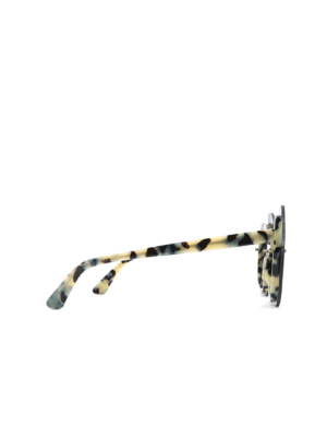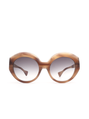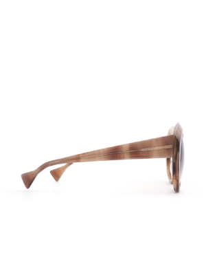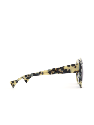 Lentes de sol circulares en color tortoise-amarillo y lente negro, hecho a mano en Italia.