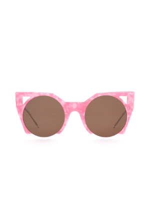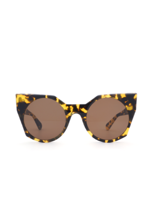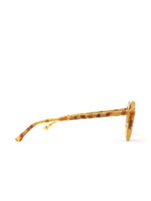 $1,549.00Lentes de sol redondo tipo “cat eye” en color tortoise-amarillo y lente café, hecho a mano en Italia.