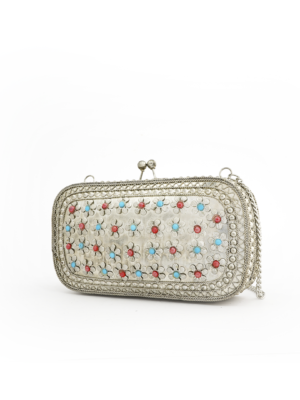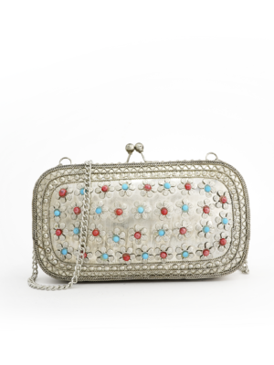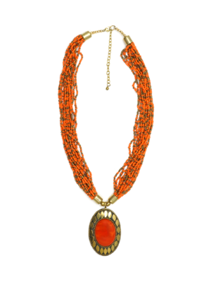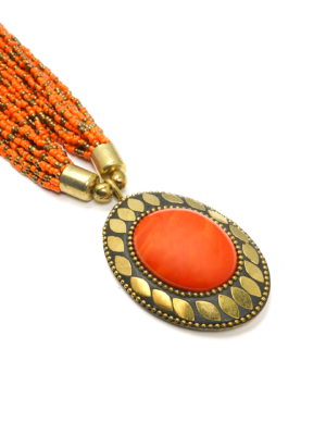 $299.99Collar de Hierro con pedrería en color naranja y café con dije circular con contorno dorado