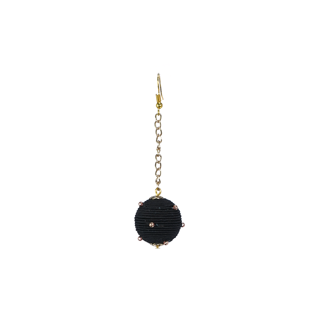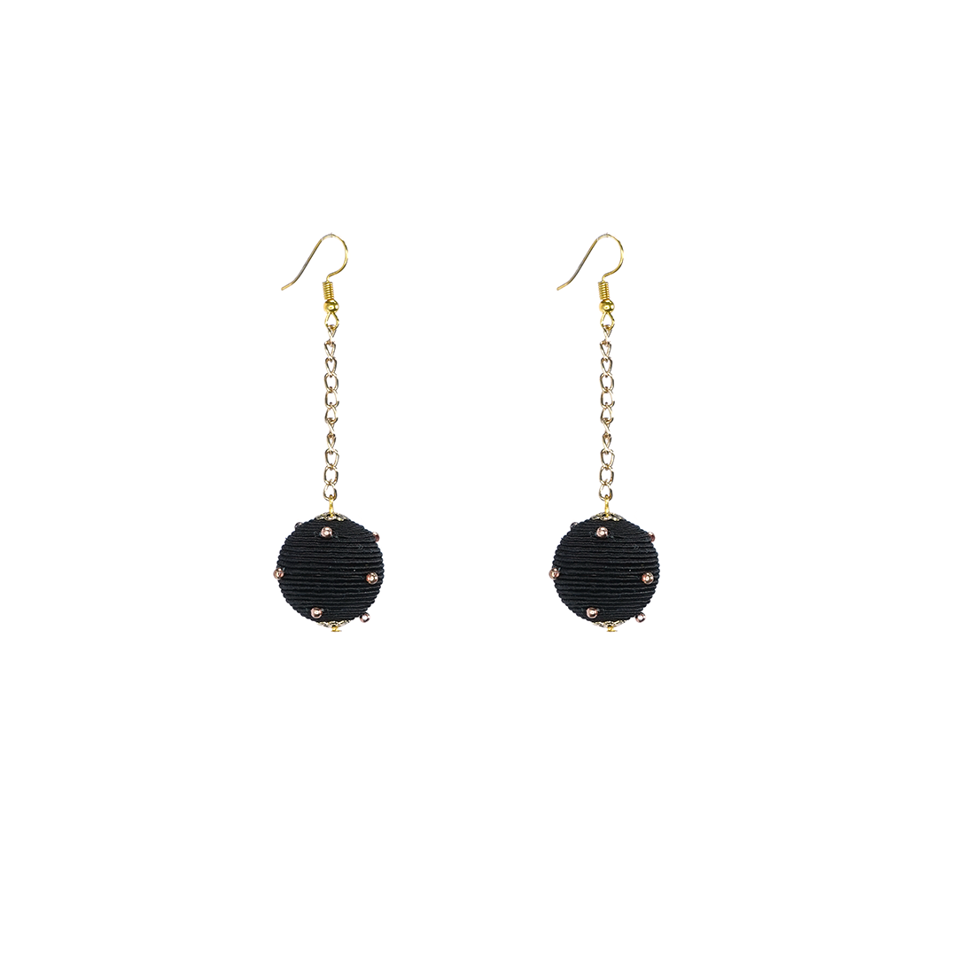 Aretes de hierro en color dorado con pendiente de cordón color negro, hecho a mano en la India.