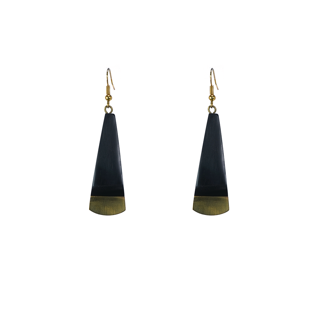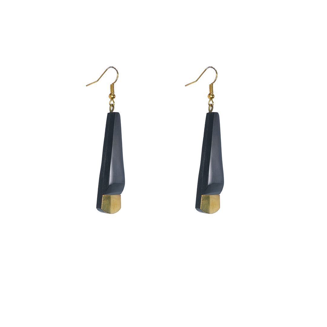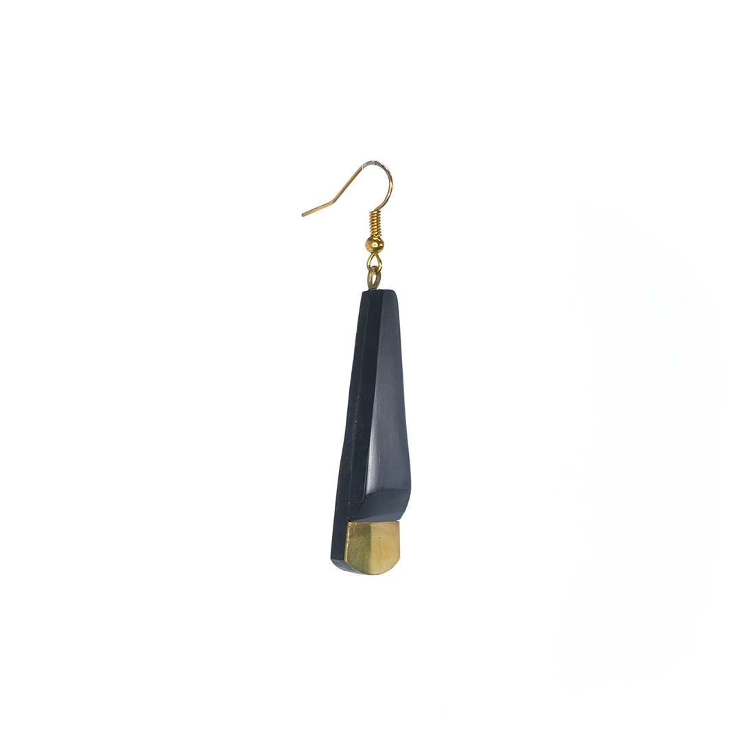 Aretes de hierro y pedrería en color negro con detalle dorado, hecho a mano en la India.