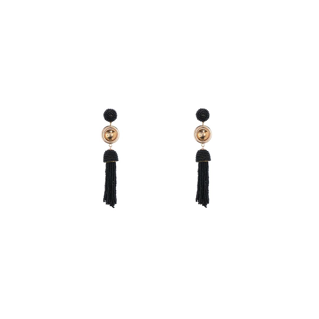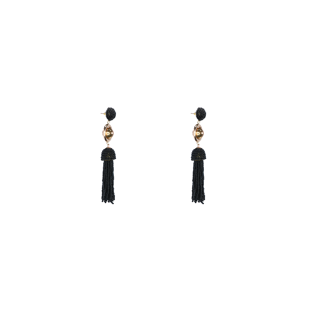 Aretes de hierro en color dorado y pedrería de color negro, hecho a mano en la India.