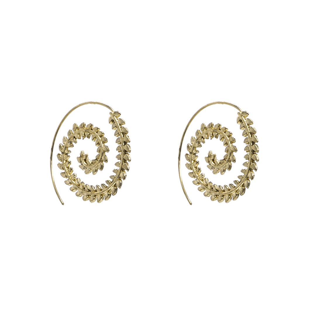 Aretes de hierro en color dorado, formado en espiral, hecho a mano en la India.