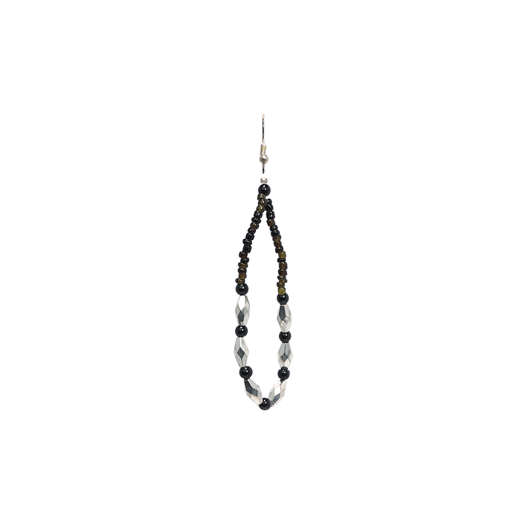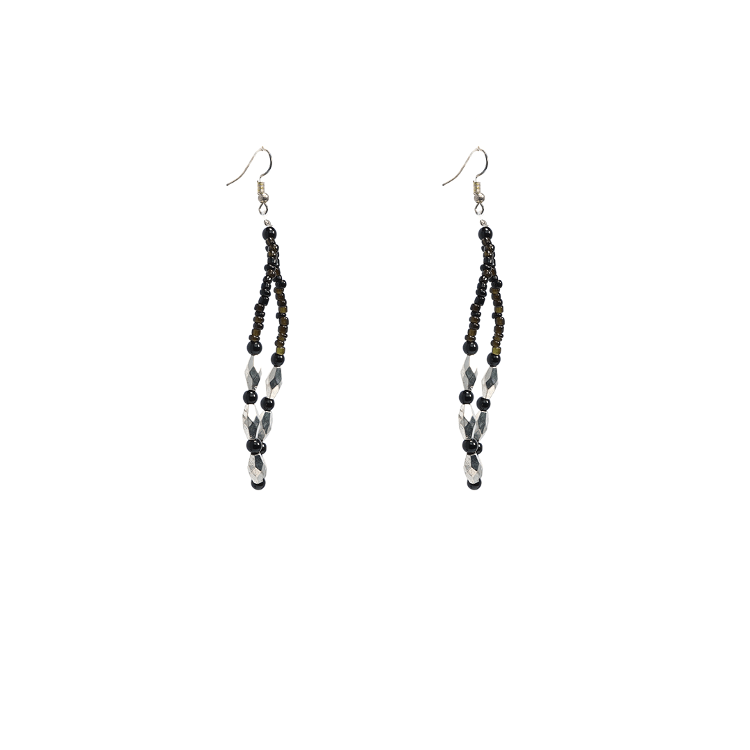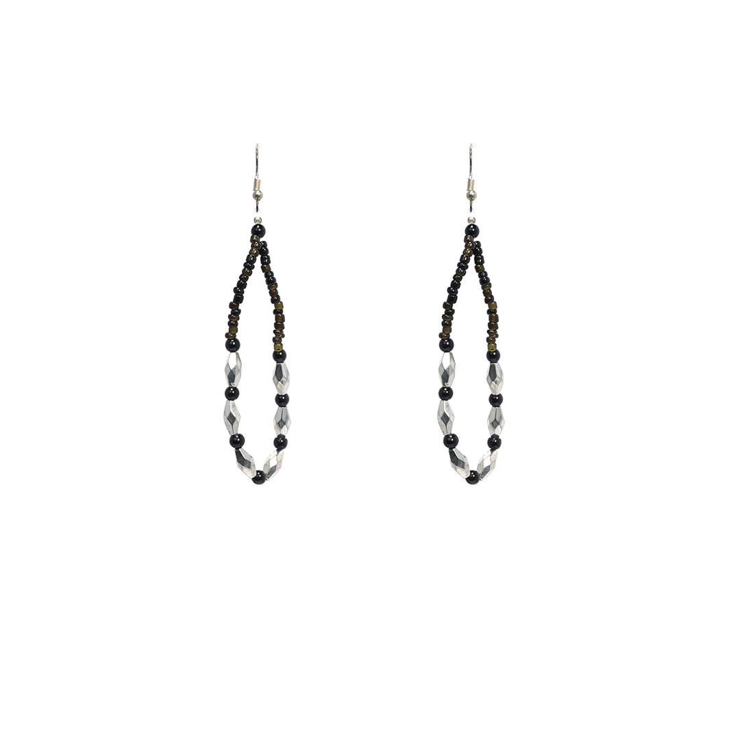 Aretes de hierro con pedrería en color negro y plateado, hecho a mano en la India.