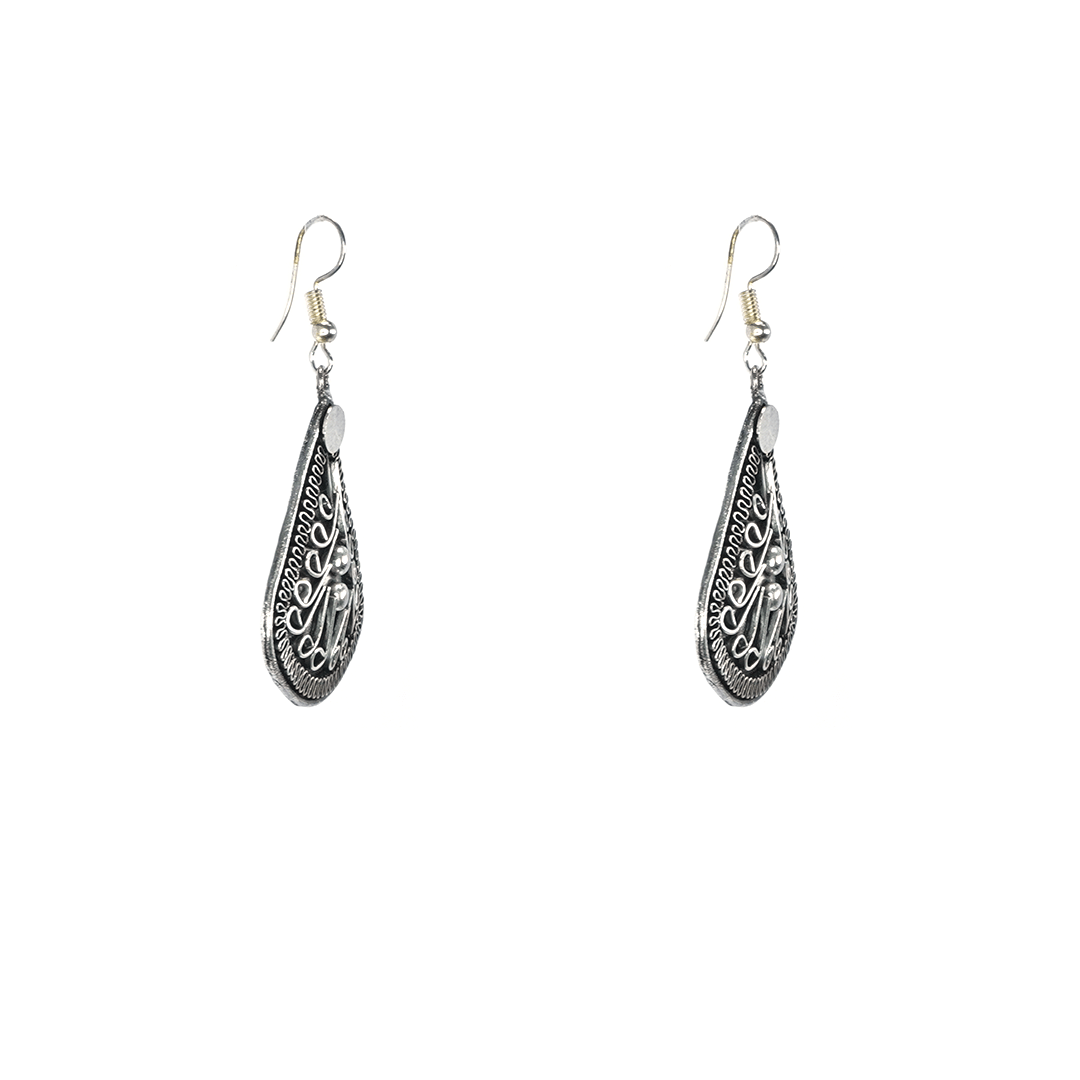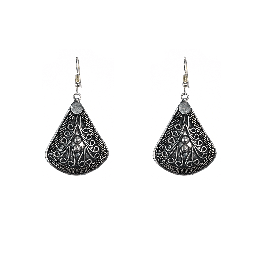 Aretes de hierro en color plateado, hecho a mano en la India.