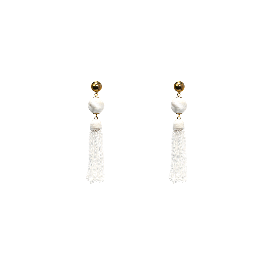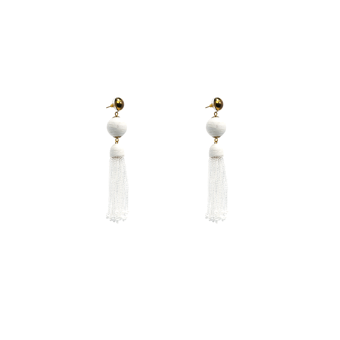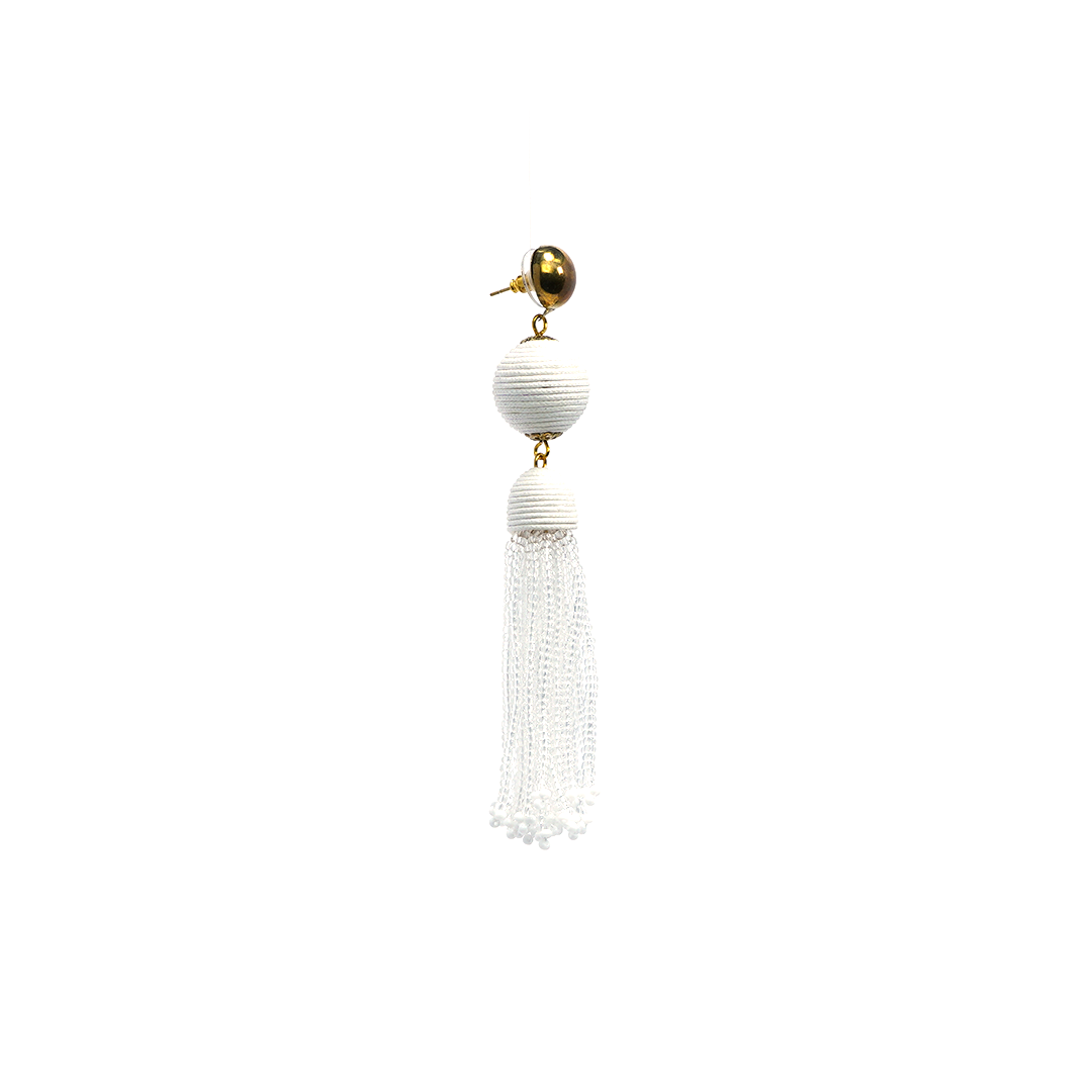 Aretes de hierro con cordón y pedrería en color blanco, hecho a mano en la India.