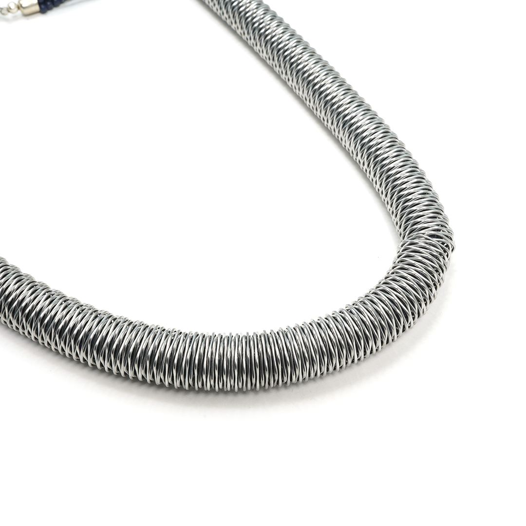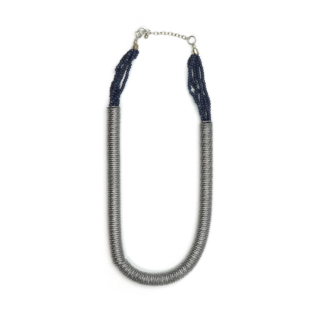 Collar de hierro con pedrería en color azul y plateado, traído desde la India.