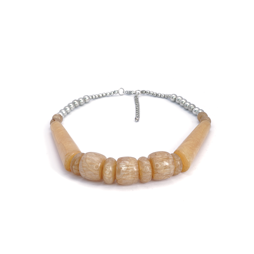 Collar de piedra en tono café claro y cadena metálica, hecho a mano en la India