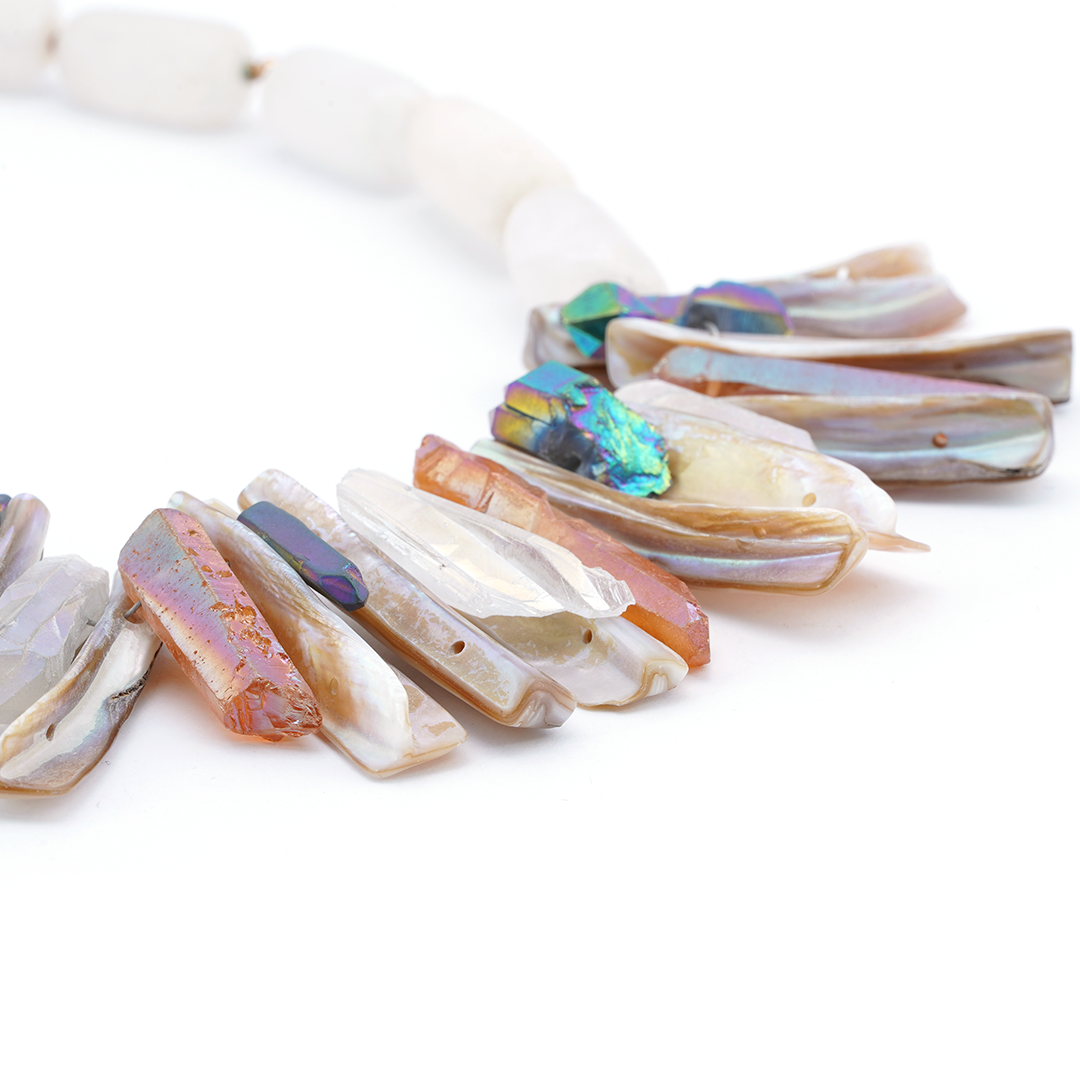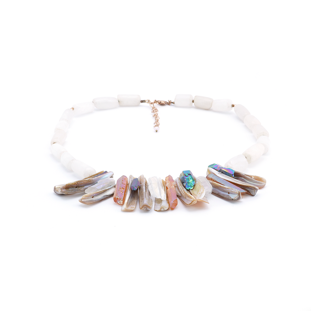 Precioso collar de pedrería y cuarzo, hecho a mano en la India.