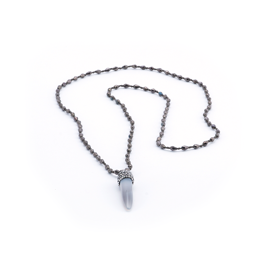 Collar de pedrería con dije de colmillo, hecho a mano en la India.