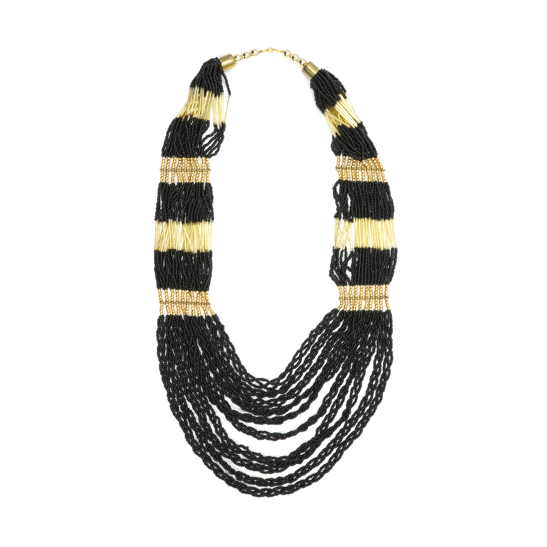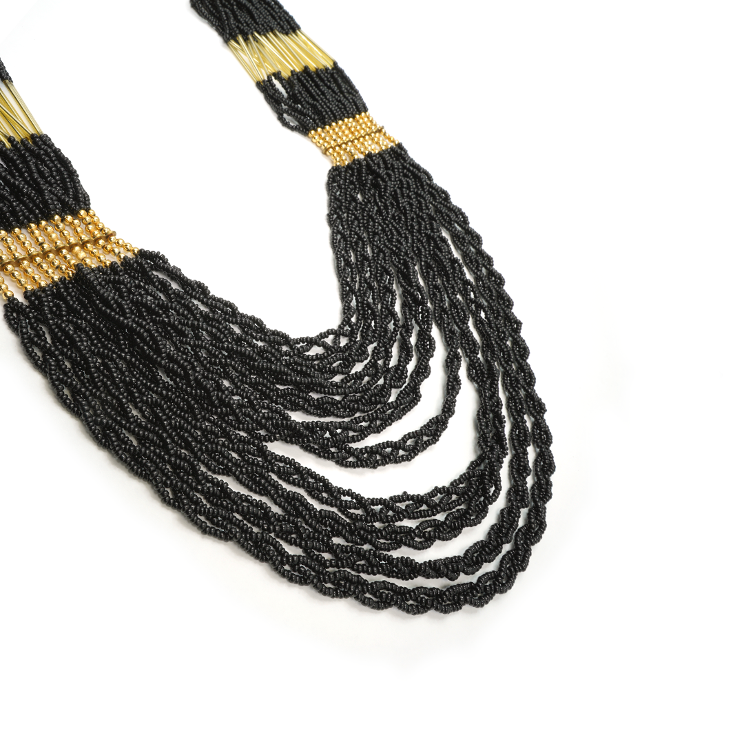 Collar de hierro e hilos con pedrería en color dorado y negro, traído desde la India.