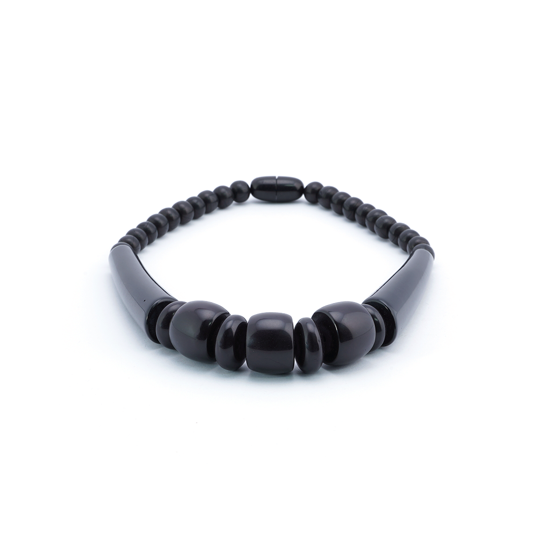 Collar de pedrería color negro, hecho a mano en Italia.