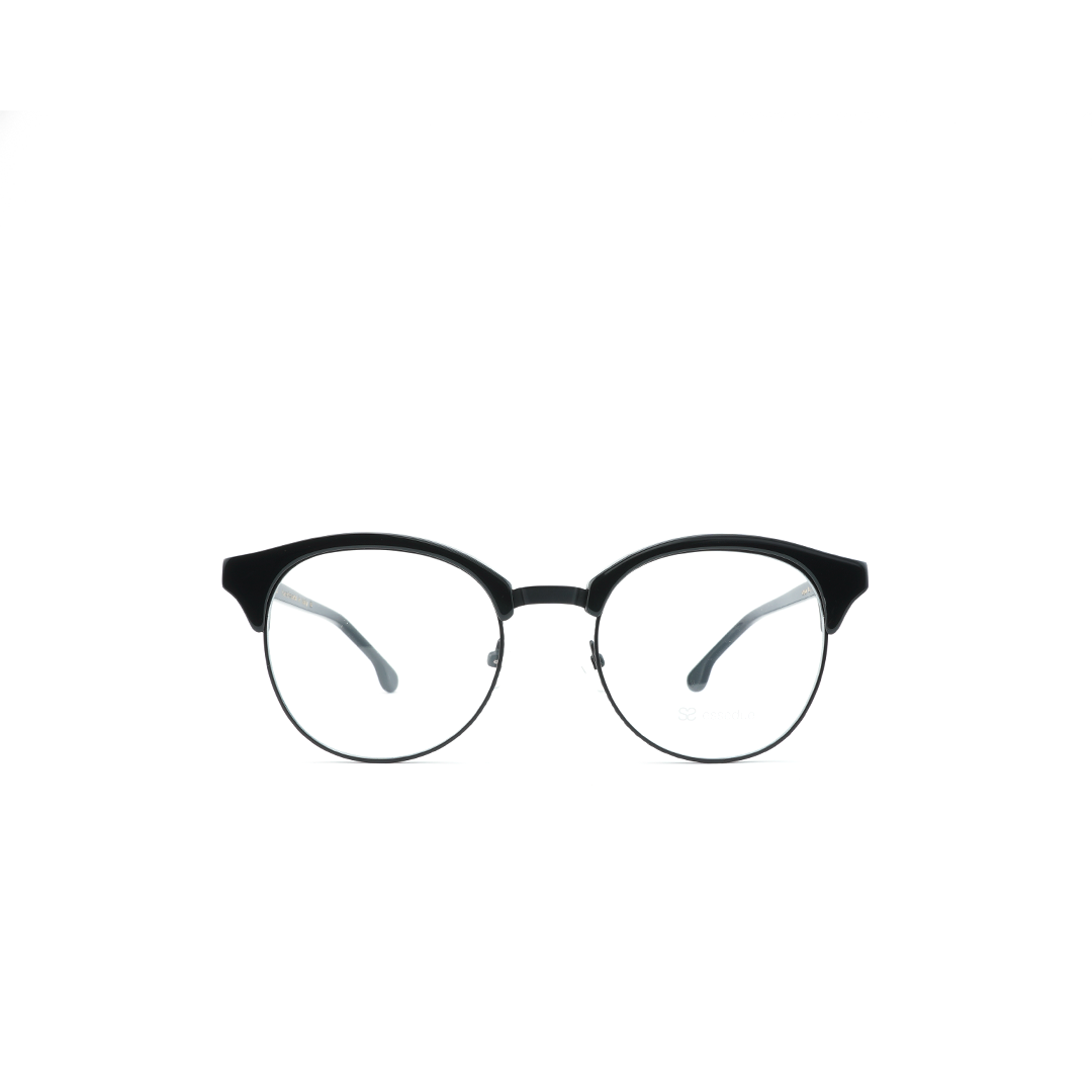 Armazón en negro con lente circular, hecho a mano en Italia.
