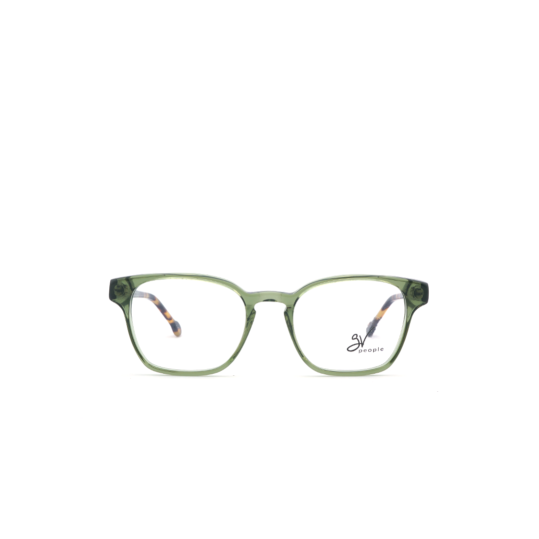 Armazón cuadrado en color verde y detalles amarillos, hecho a mano en Italia.