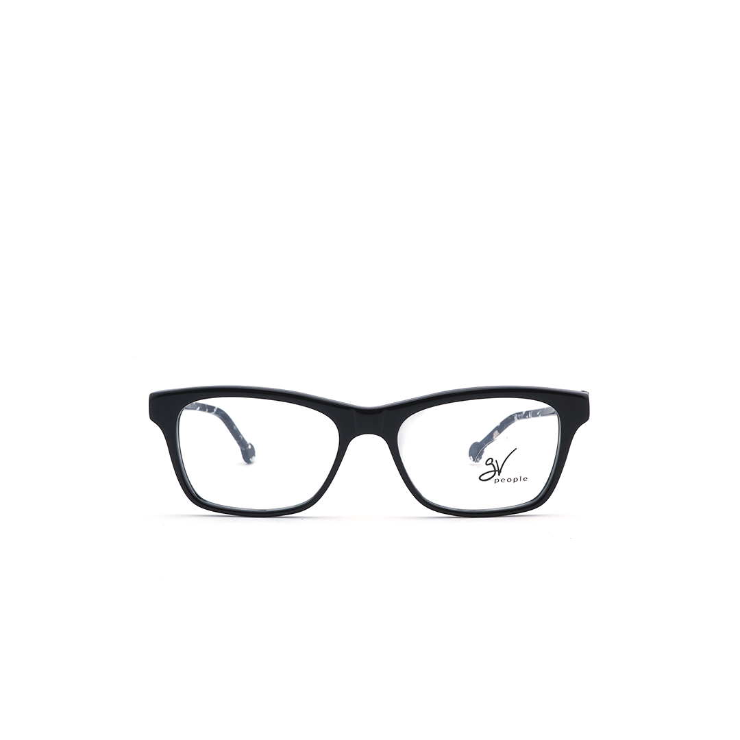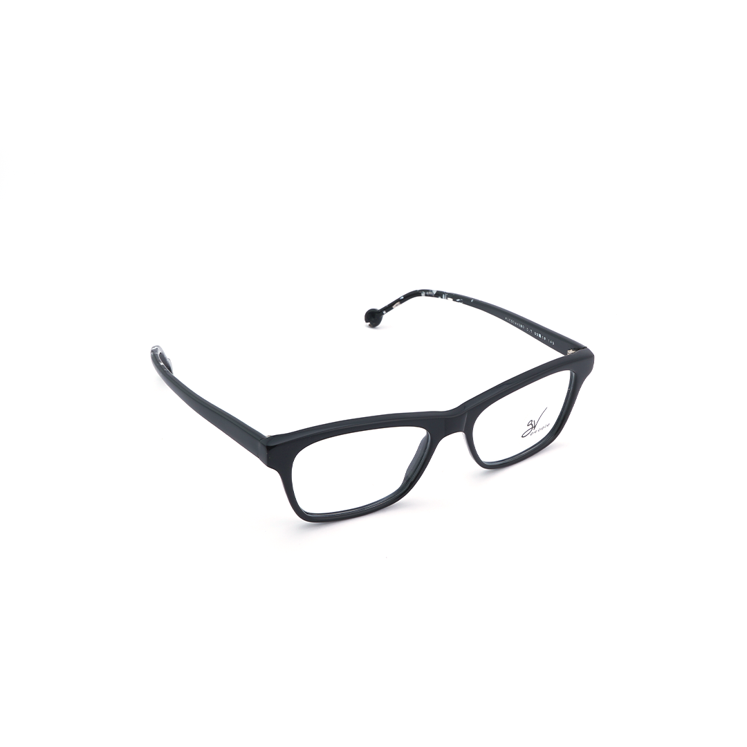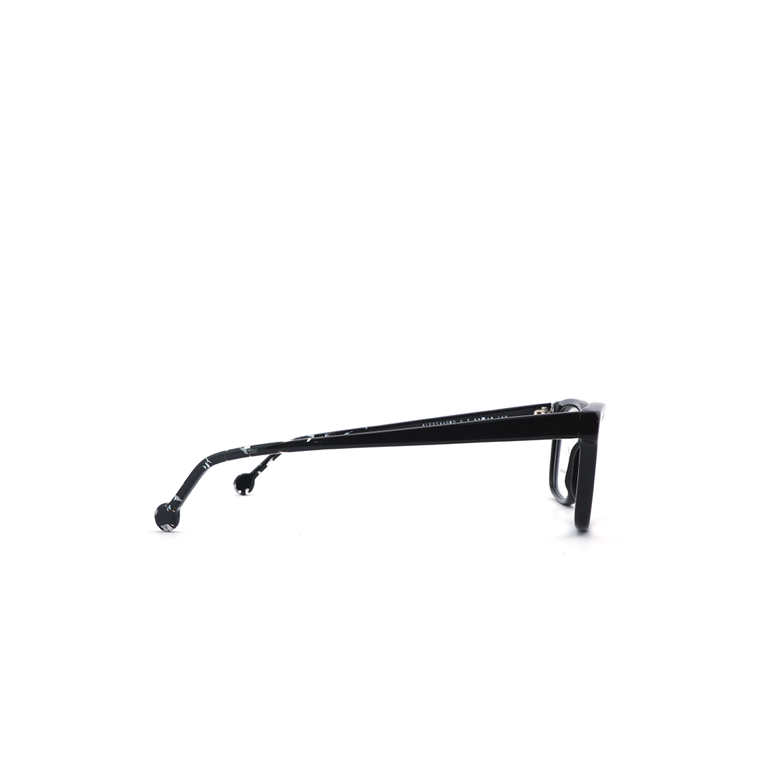 Armazón cuadrado color negro con detalles claros, hecho a mano en Italia.