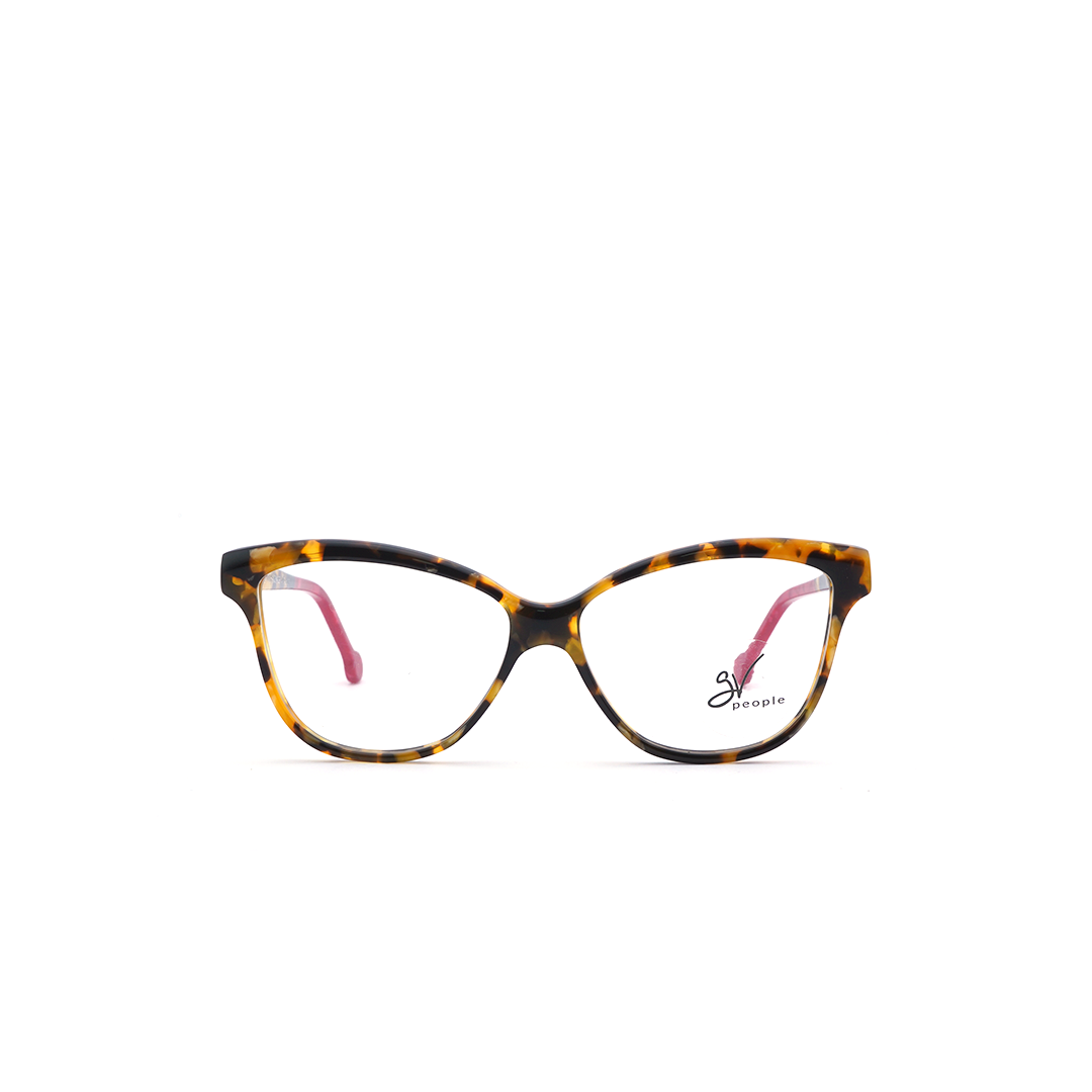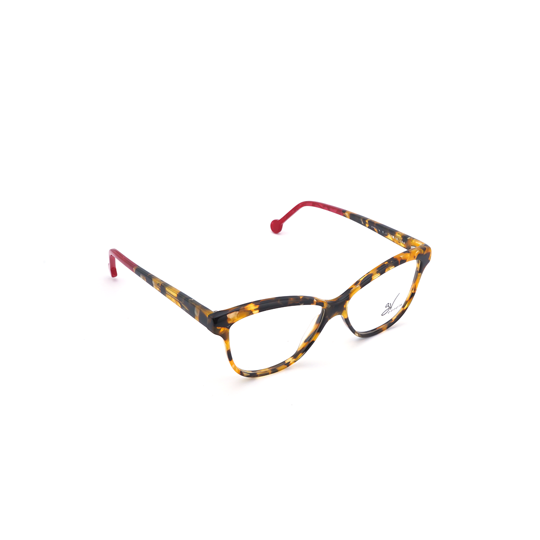 Armazón tipo wayfarer en color café, amarillo y rojo, hecho a mano en Italia.