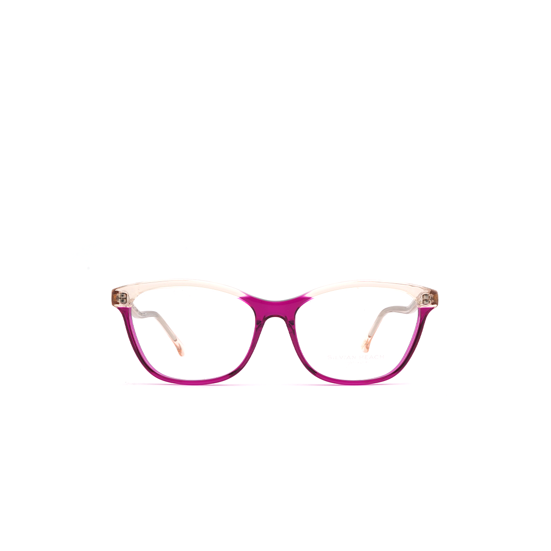 Armazón cuadrado en color fucsia y rosa-transparente, hecho a mano en Italia.