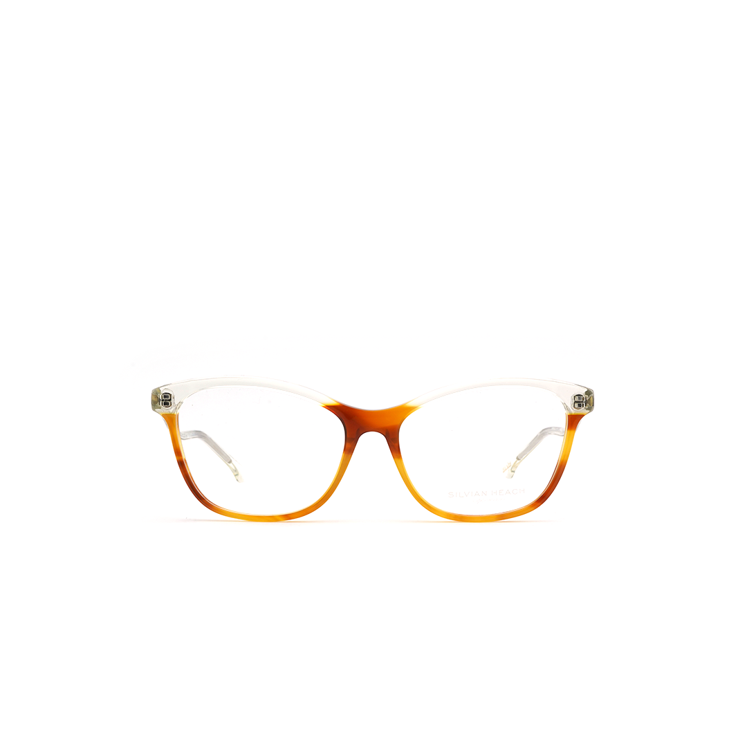 Armazón cuadrado transparente con color naranja y amarillo, hecho a mano en Italia.
