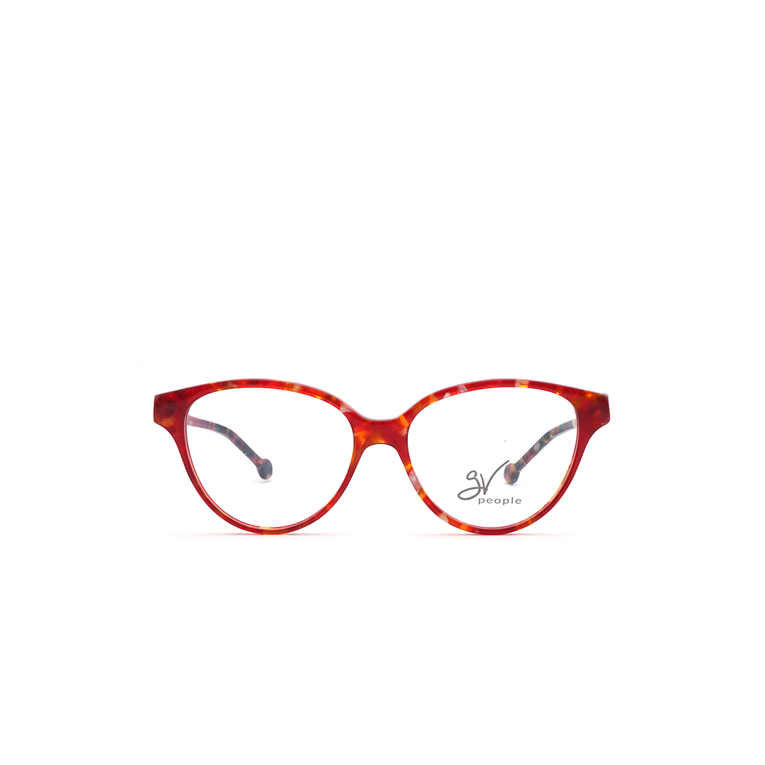 Armazón tipo wayfarer en color tortoise-rojo y amarillo, hecho a mano en Italia.