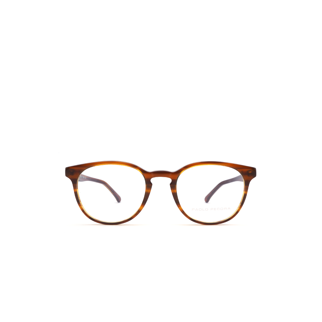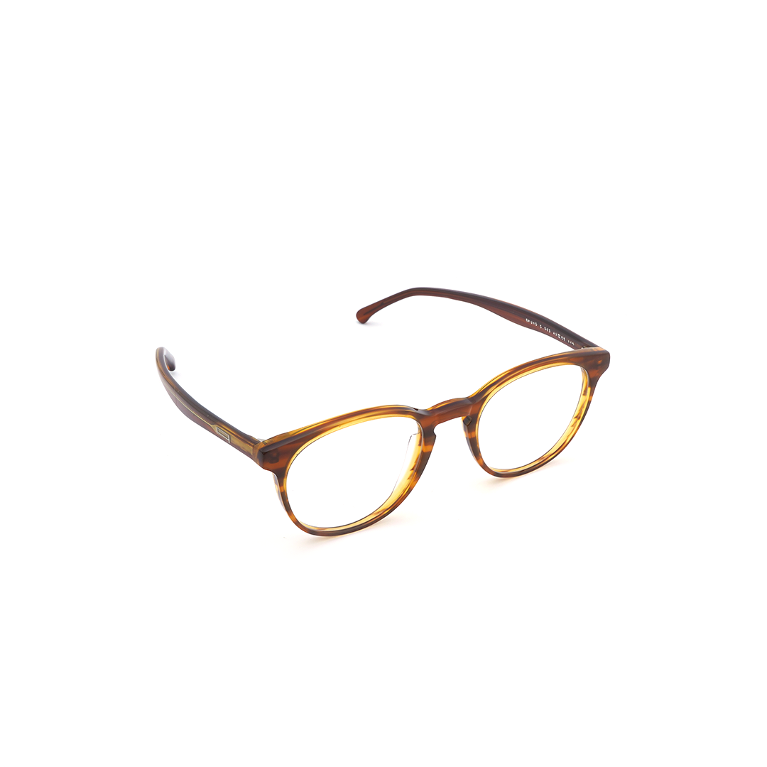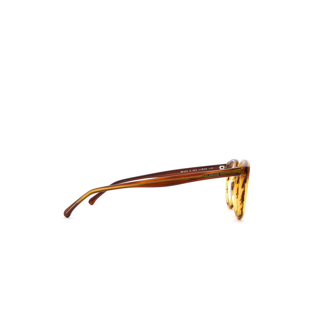 Armazón circular en tonos café con color amarillo en los interiores, hecho en Italia.