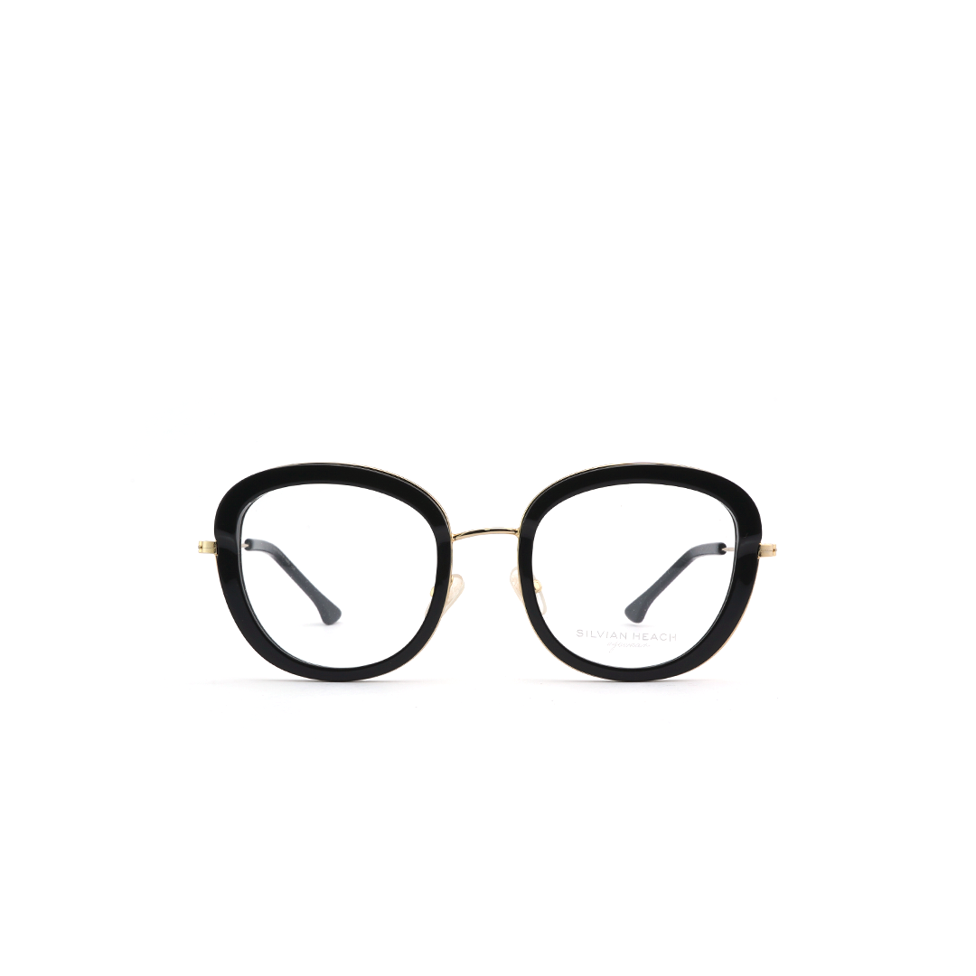 Armazón circular en color negro con dorado, hecho a mano en Italia.