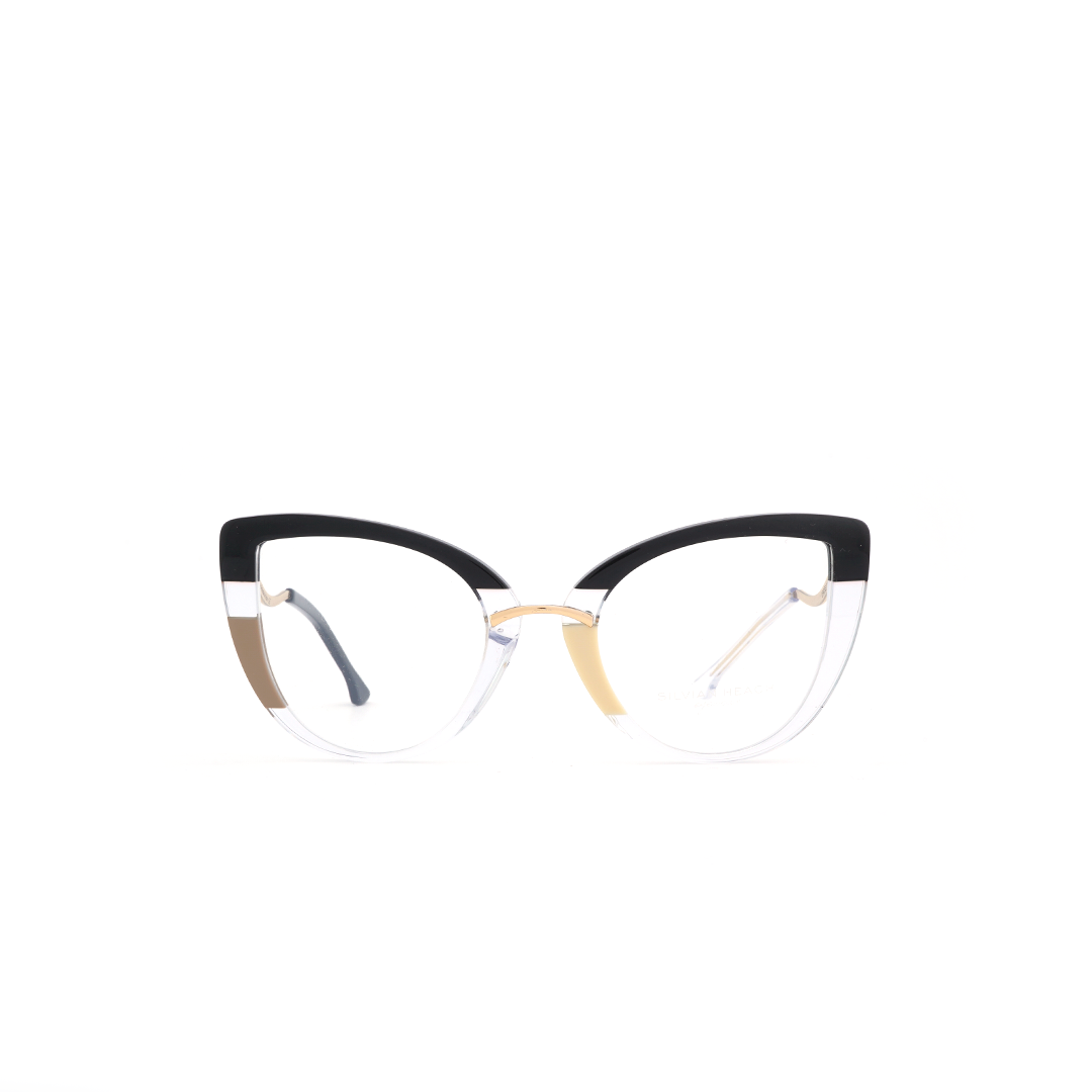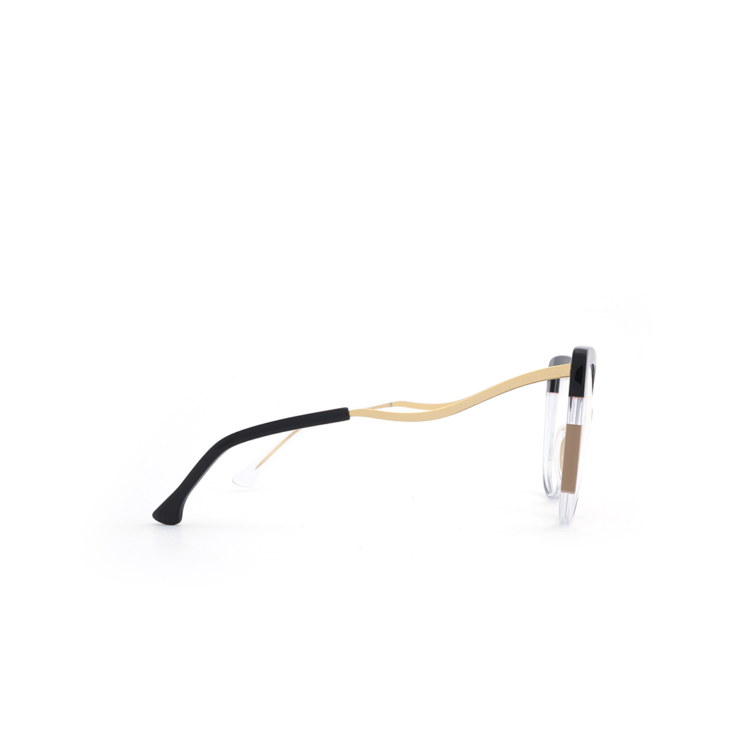 Armazón tipo “cat eye” en color negro, dorado y transparente, hecho a mano en Italia.