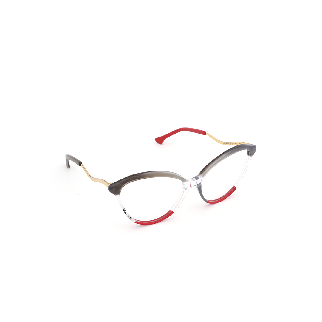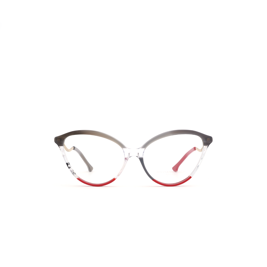 Armazón tipo “mariposa” en color gris, rojo, crema y transparente, hecho a mano en Italia.