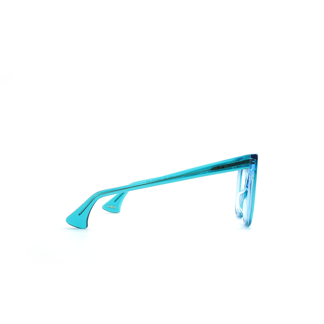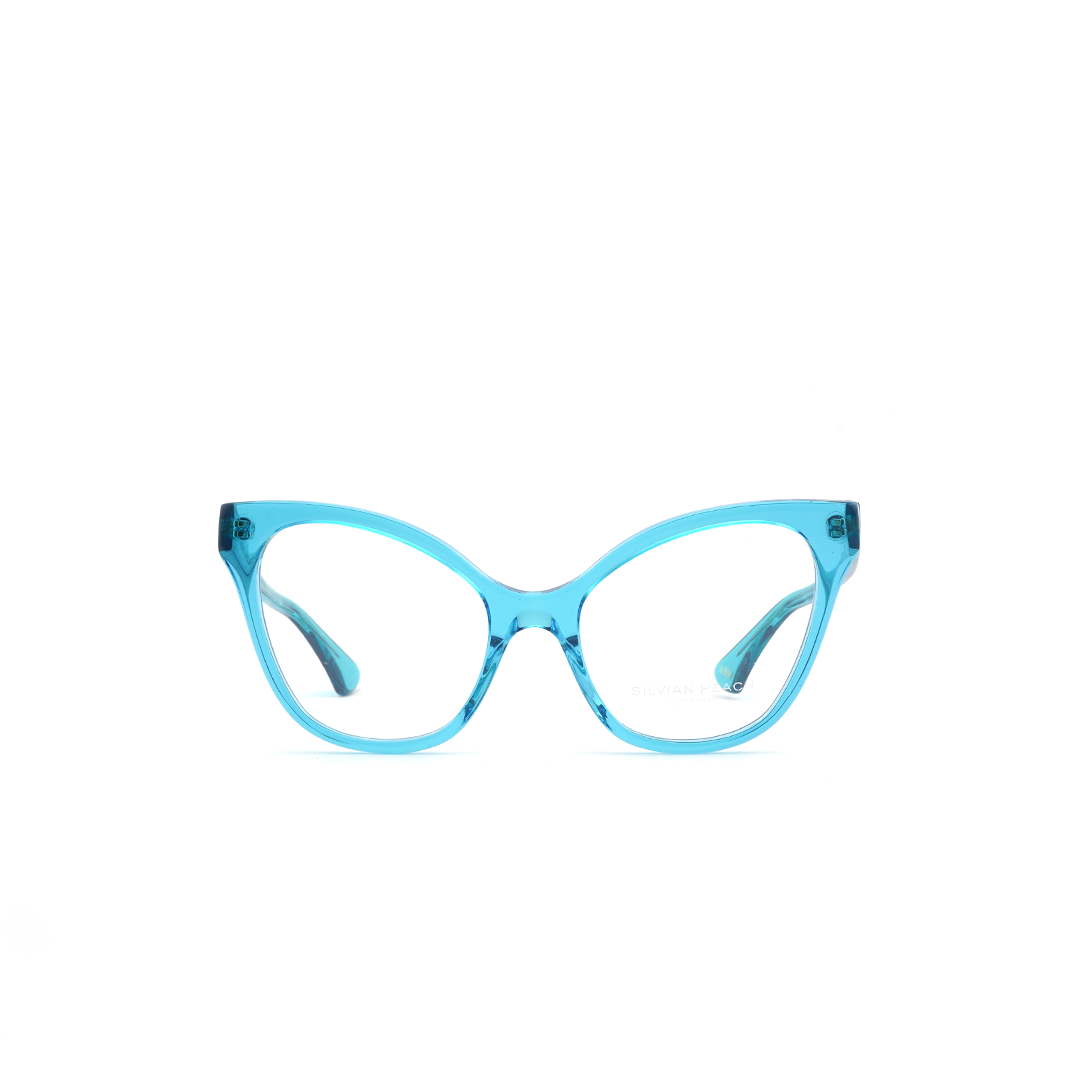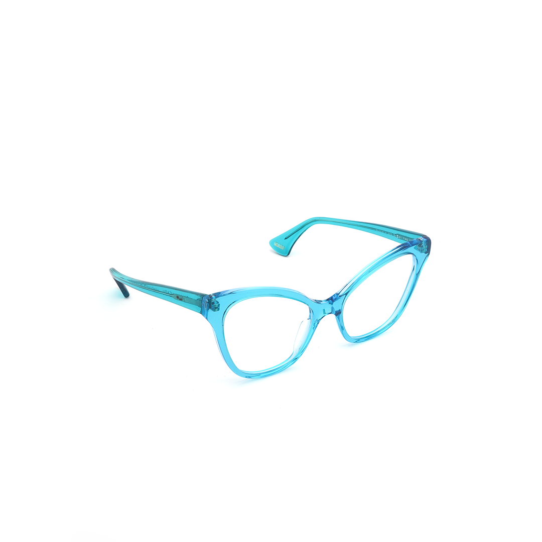 Armazón tipo “cat eye” en color azul, hecho a mano en Italia.