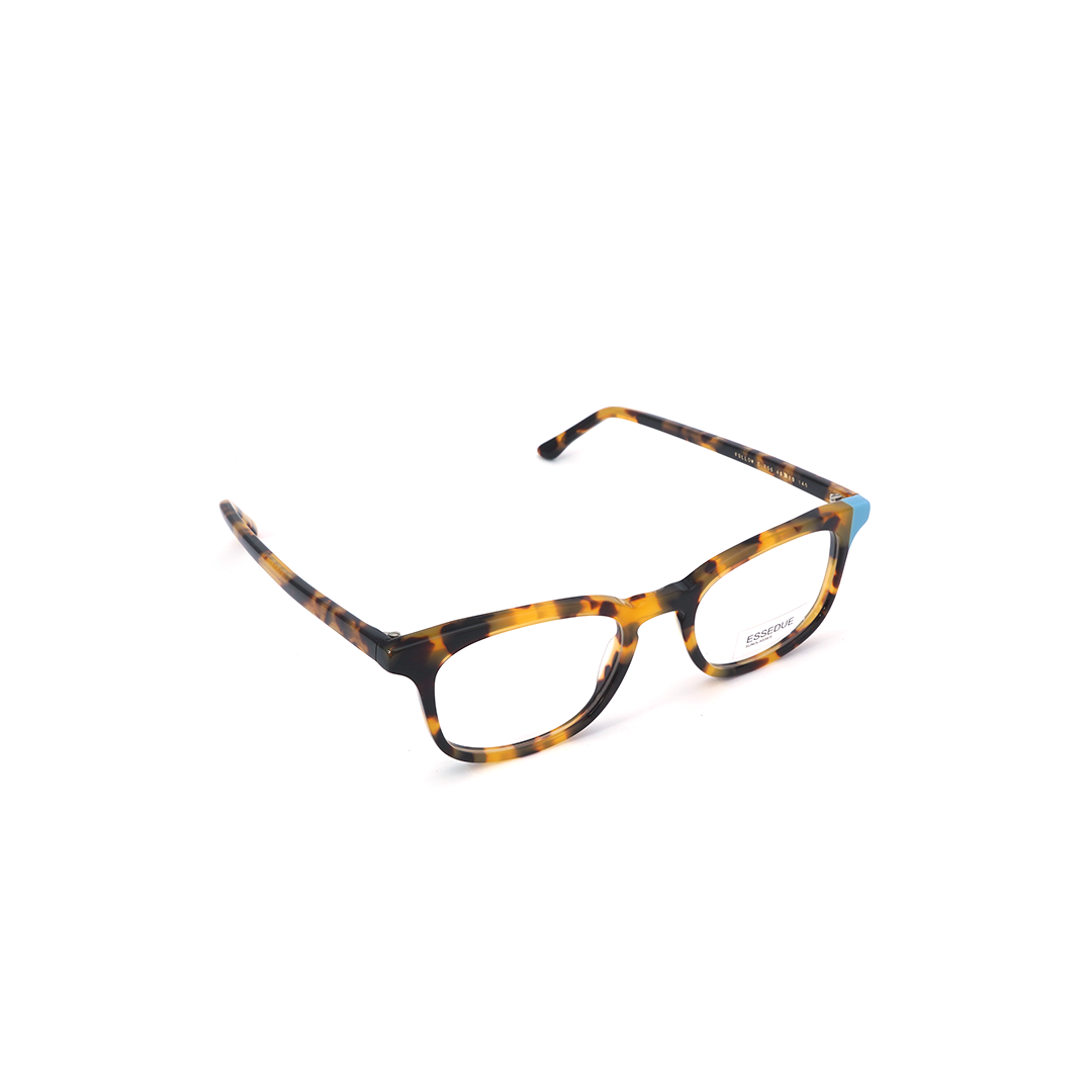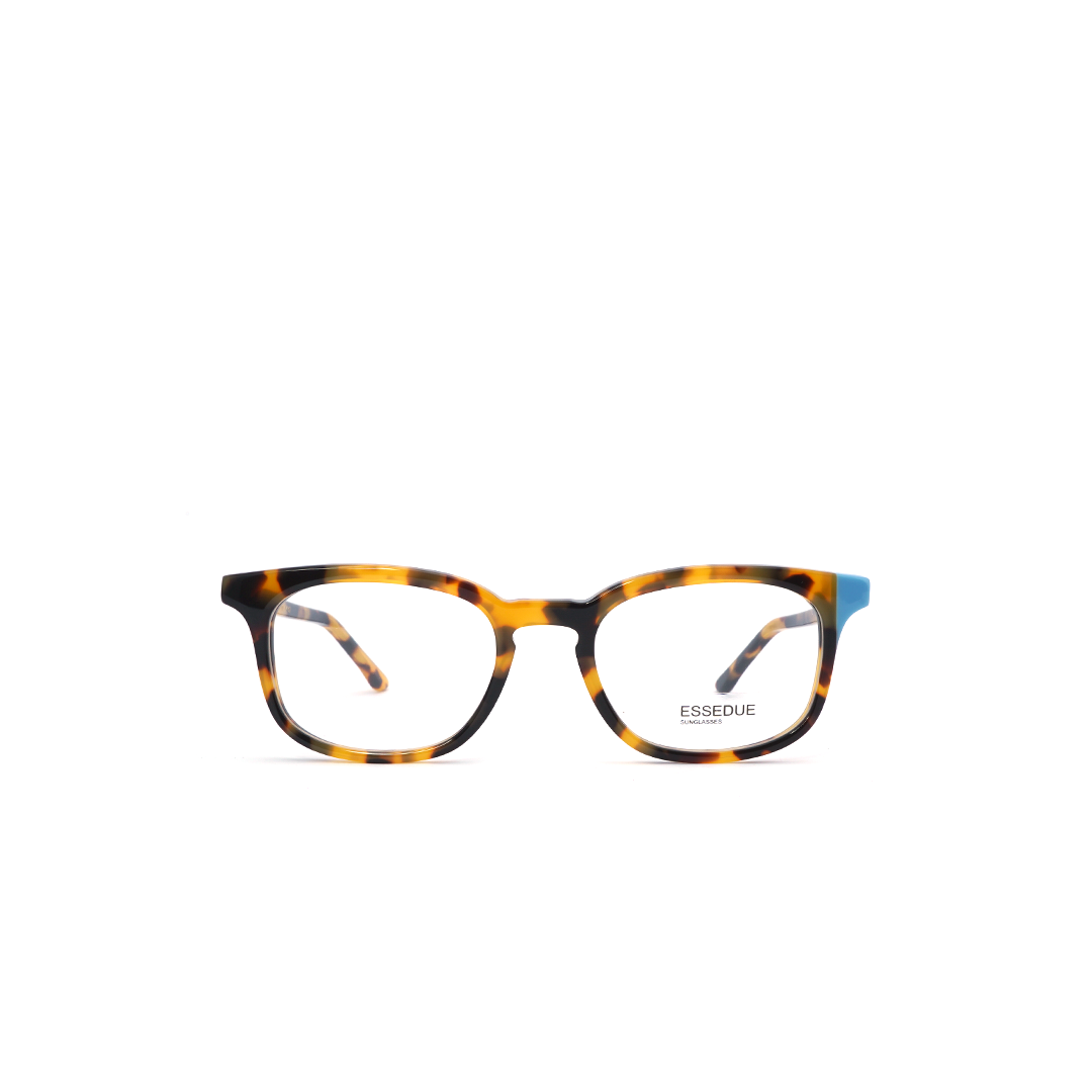 Armazón en color tortoise-amarillo con detalle azul, hecho a mano en Italia.