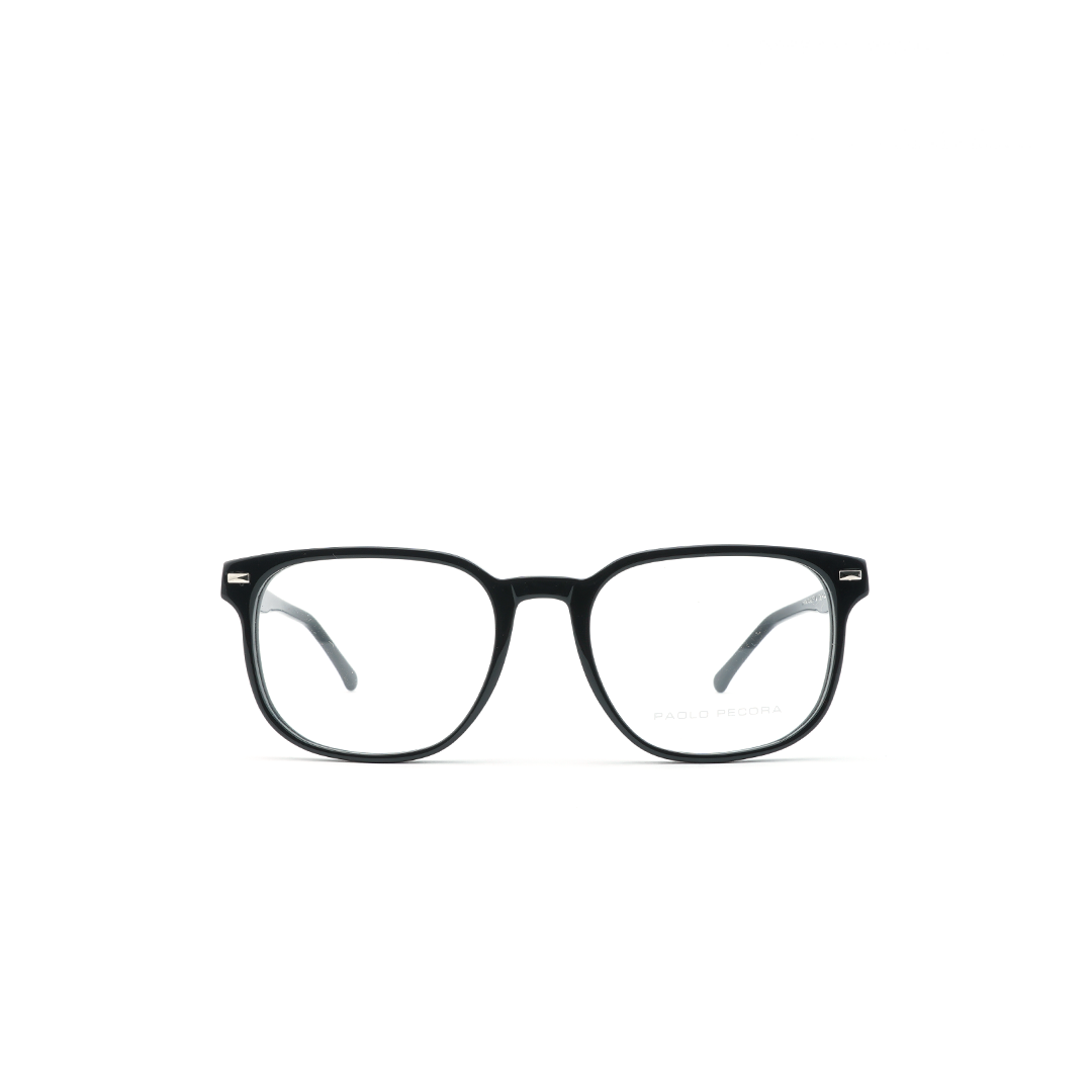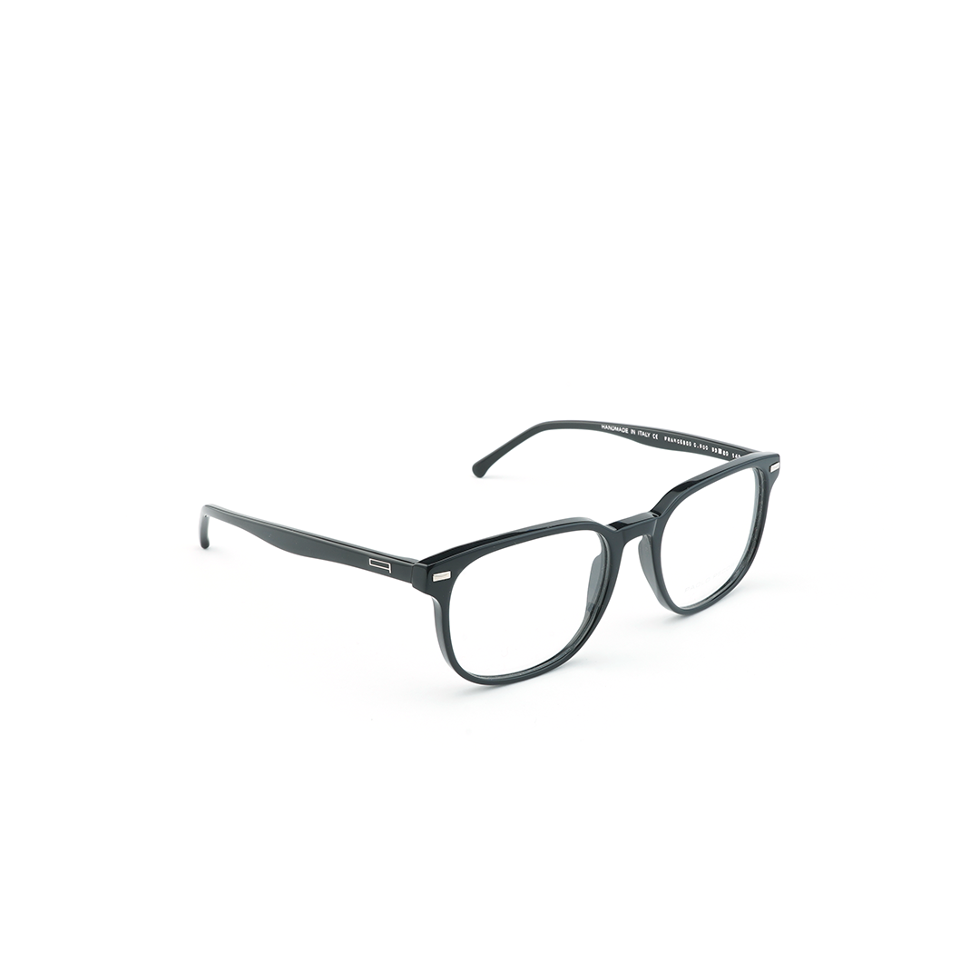 Armazón tipo wayfarer en color negro, hecho a mano en Italia.