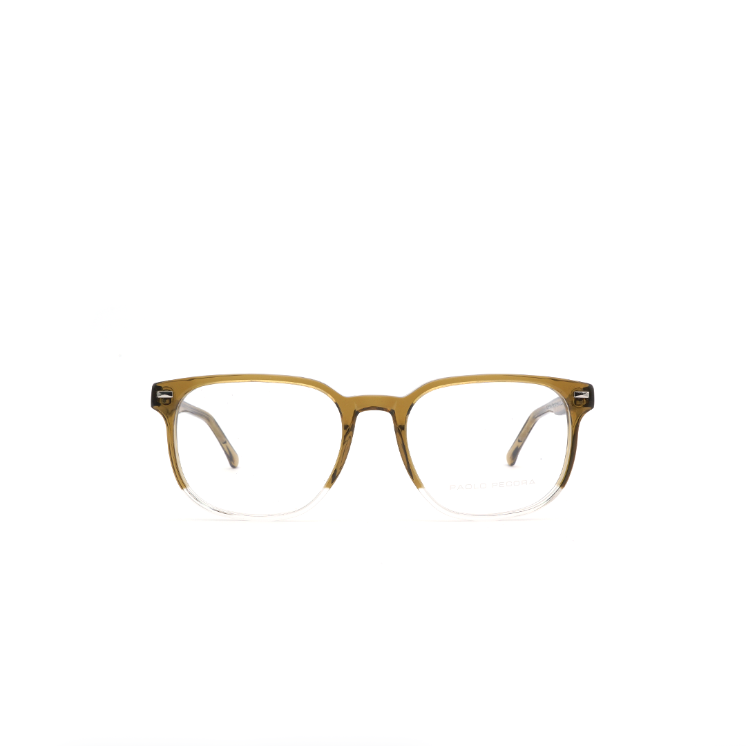 Armazón tipo wayfarer medio marco en color marrón, hecho a mano en Italia.