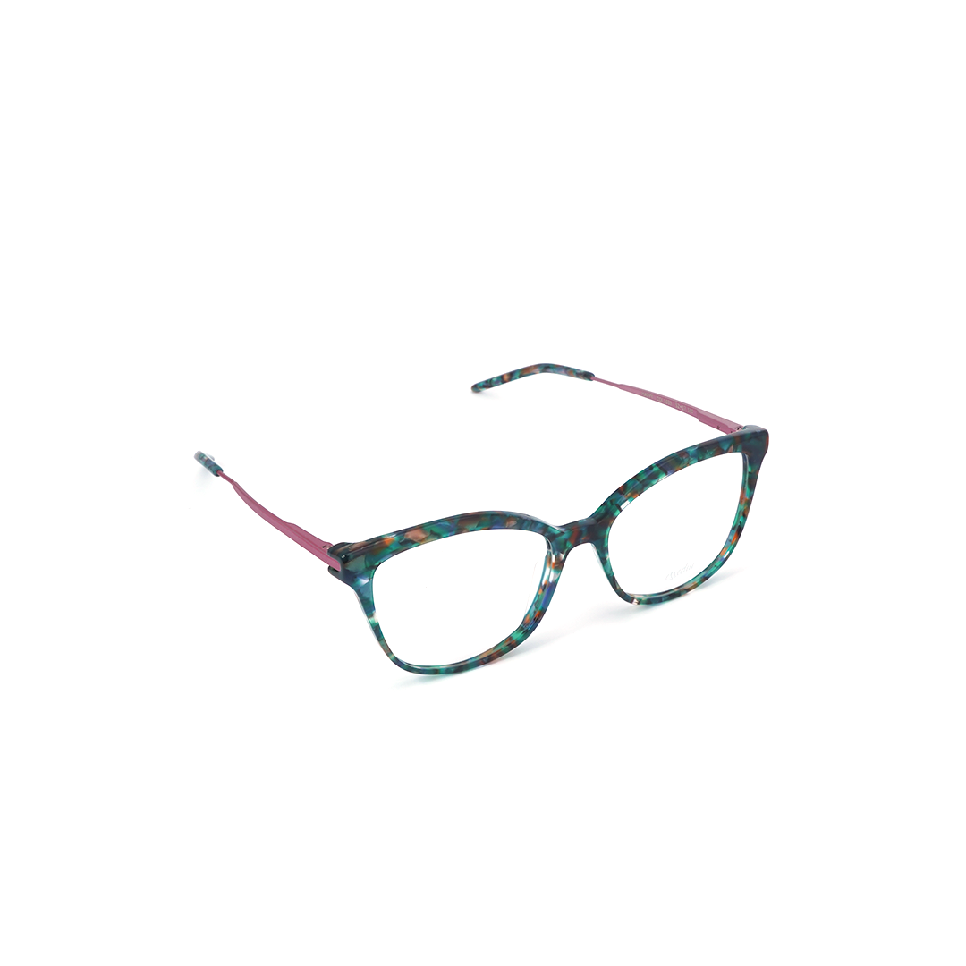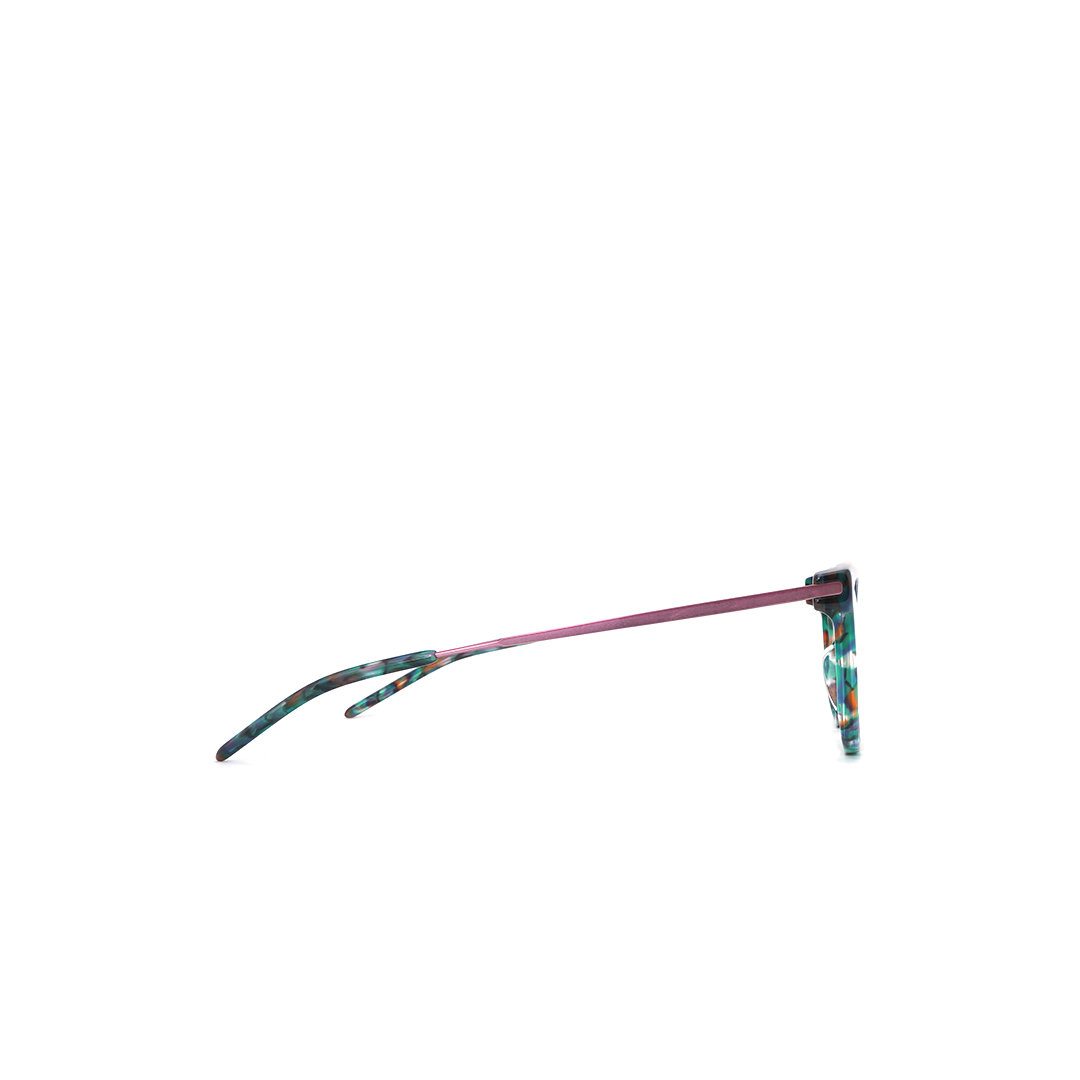 Armazón en color tortoise-verde con magenta, hecho a mano en Italia.