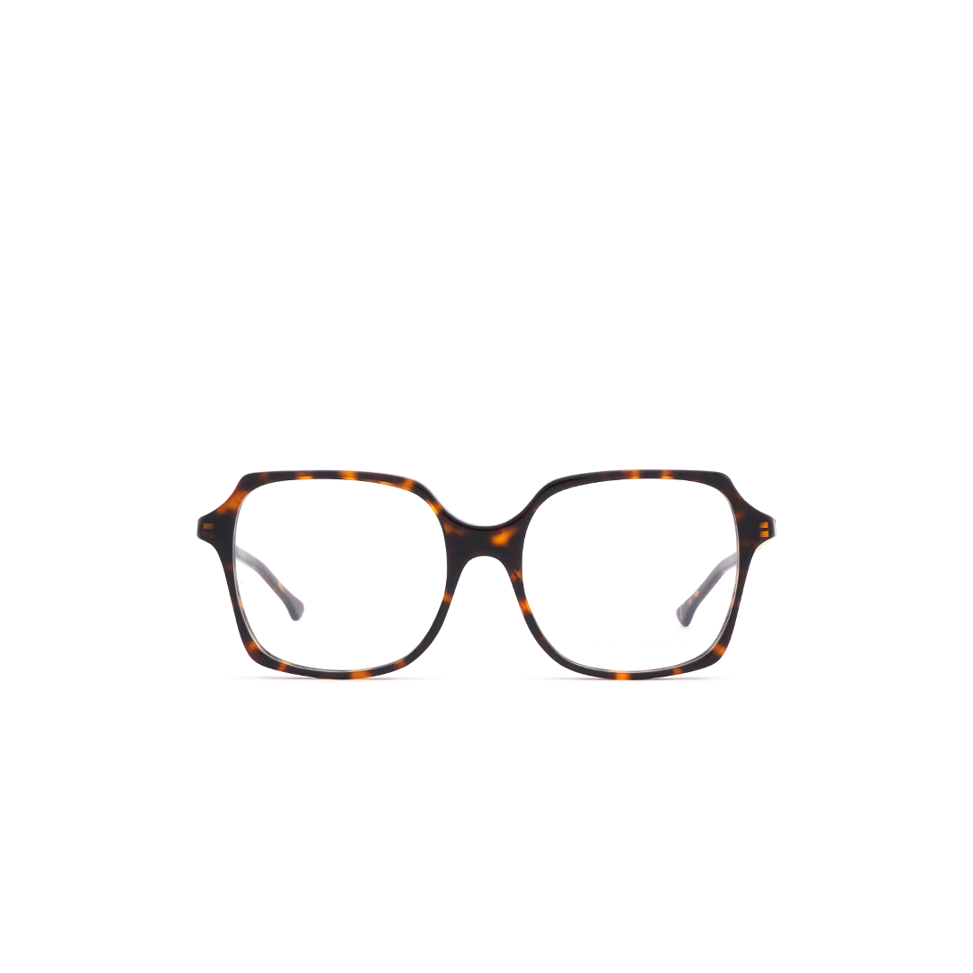 Lentes cuadrados en color tortoise-café con dorado, hecho a mano en Italia.