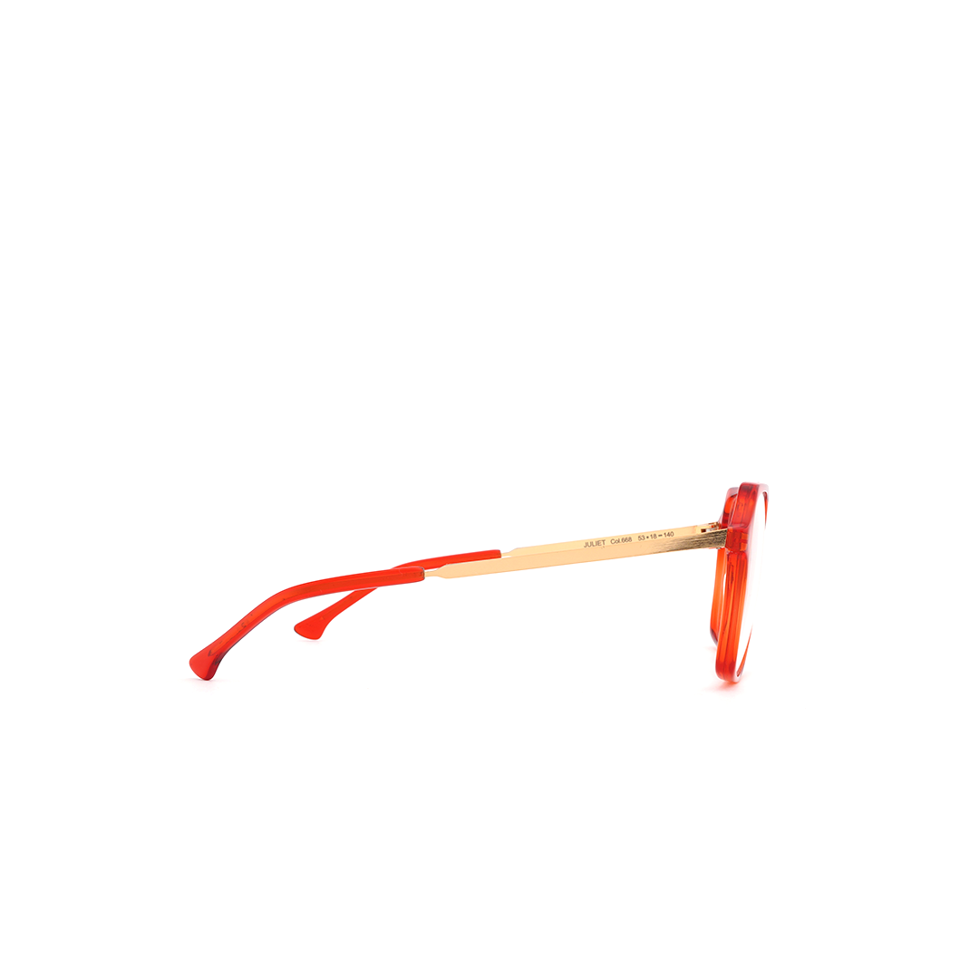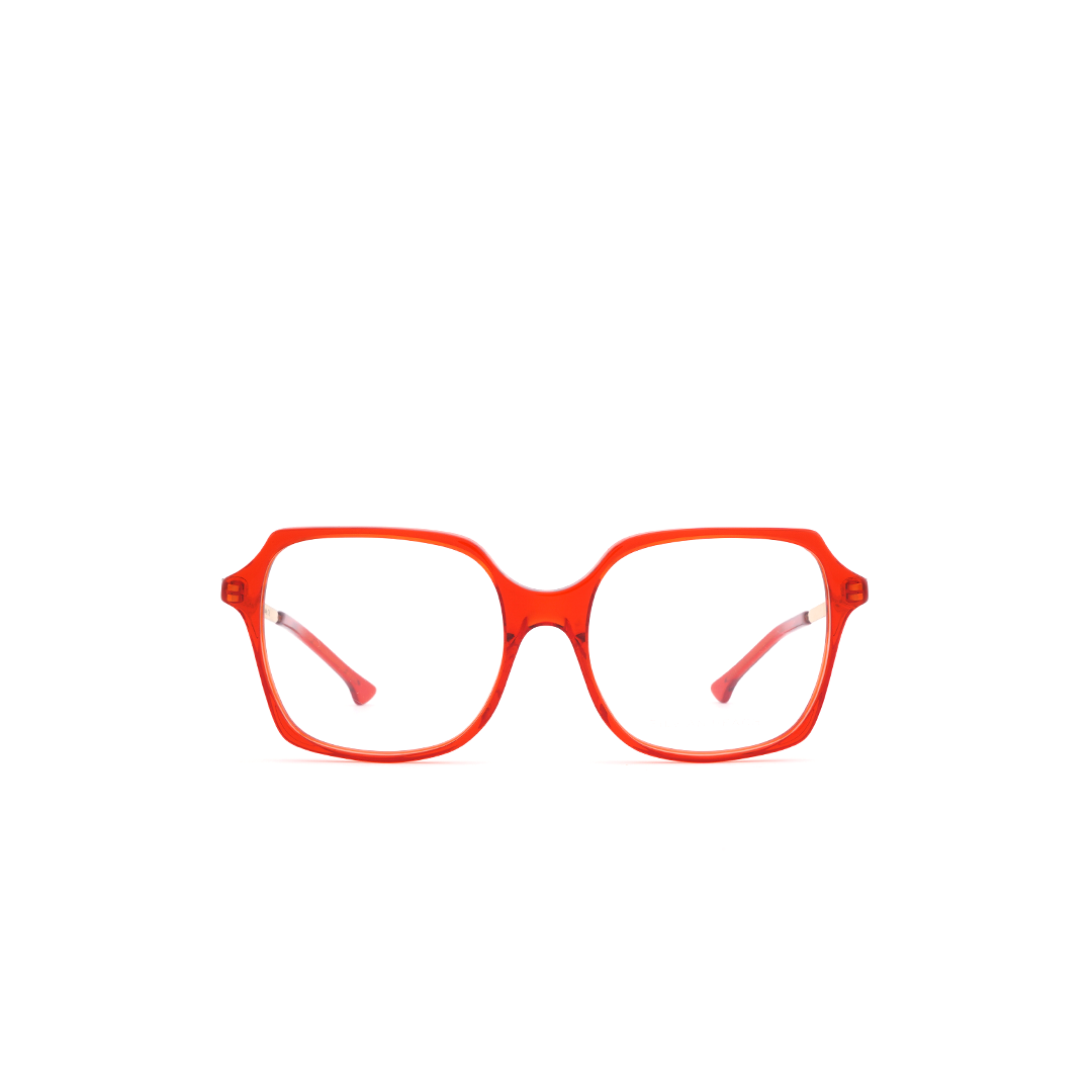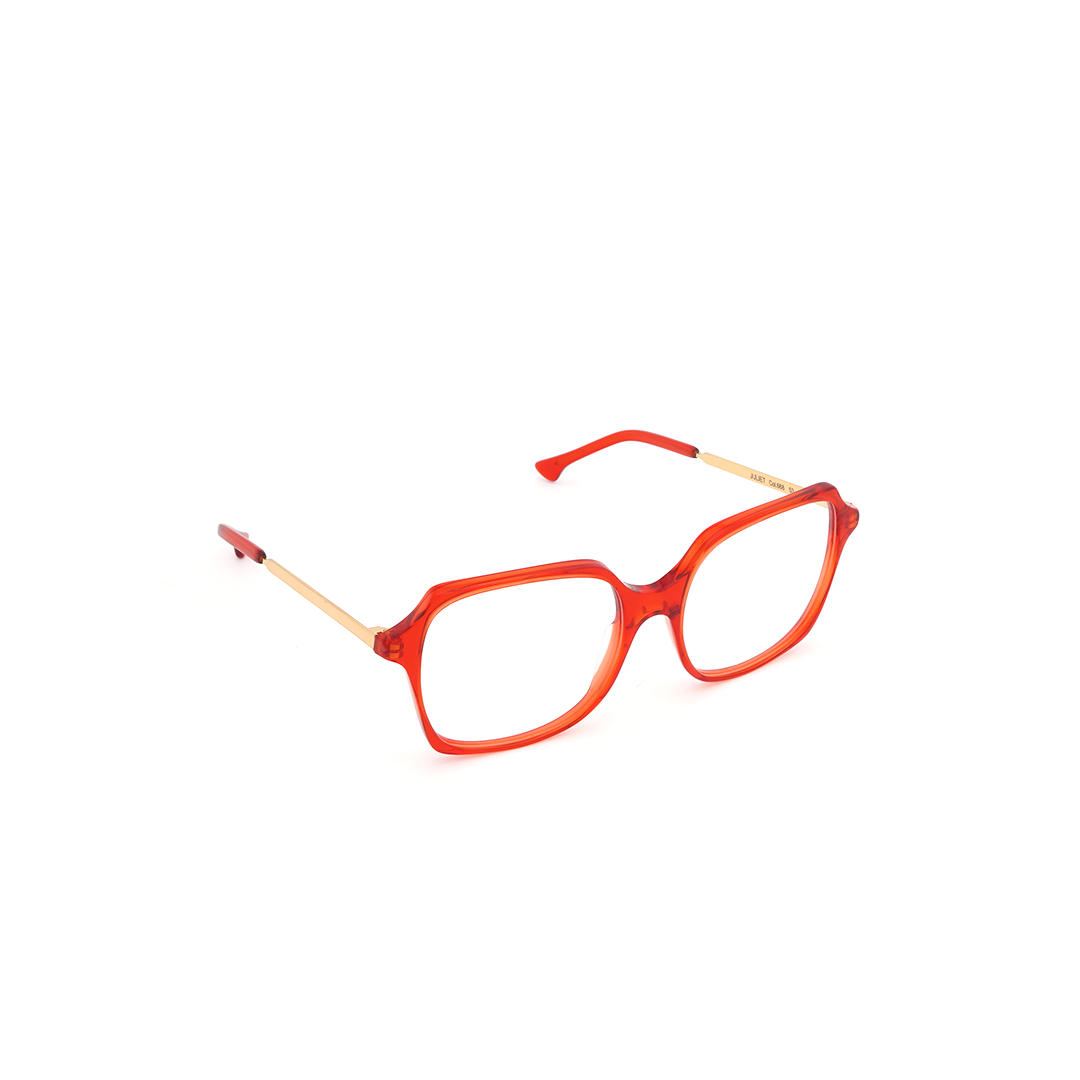 Lentes cuadrados en color rojo con dorado, hecho a mano en Italia.