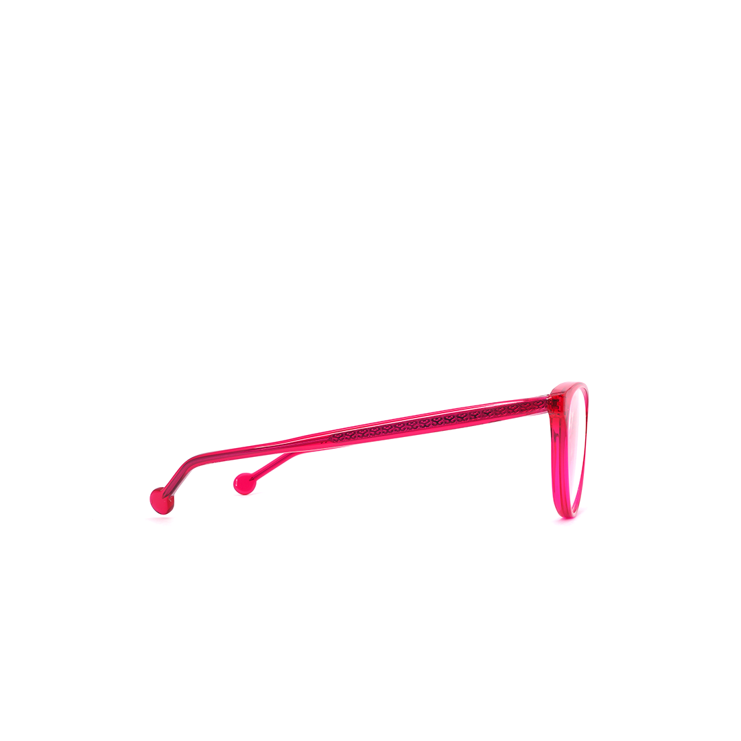 Armazón en color magenta con detalle café, hecho a mano en Italia.