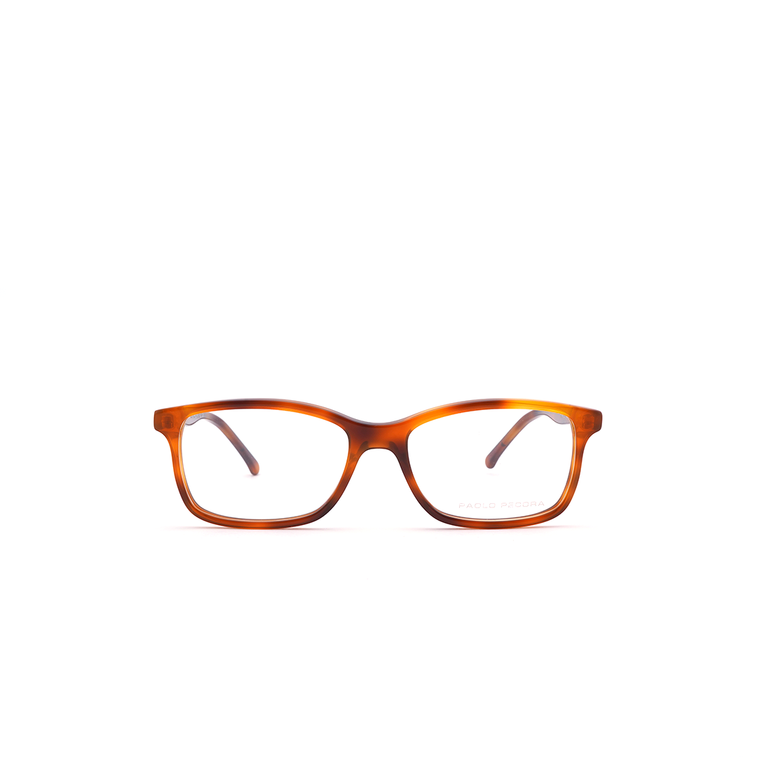 Armazón cuadrado en color naranja con café, hecho a mano en Italia.