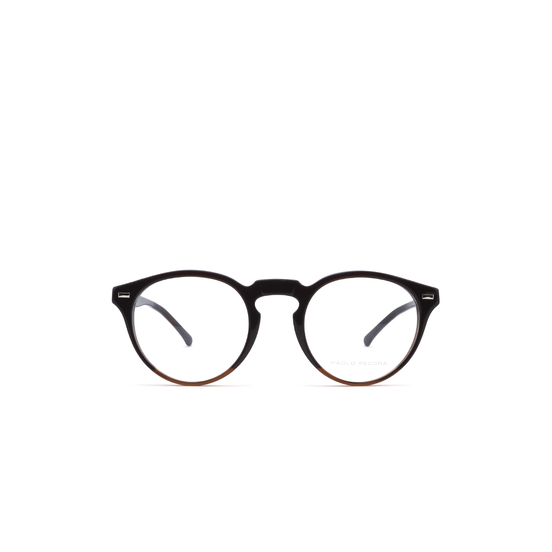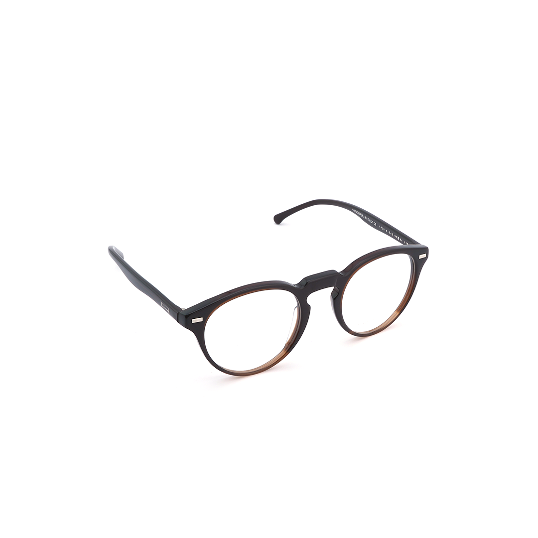 Armazón con lente circular en color negro con café, hecho a mano en Italia.