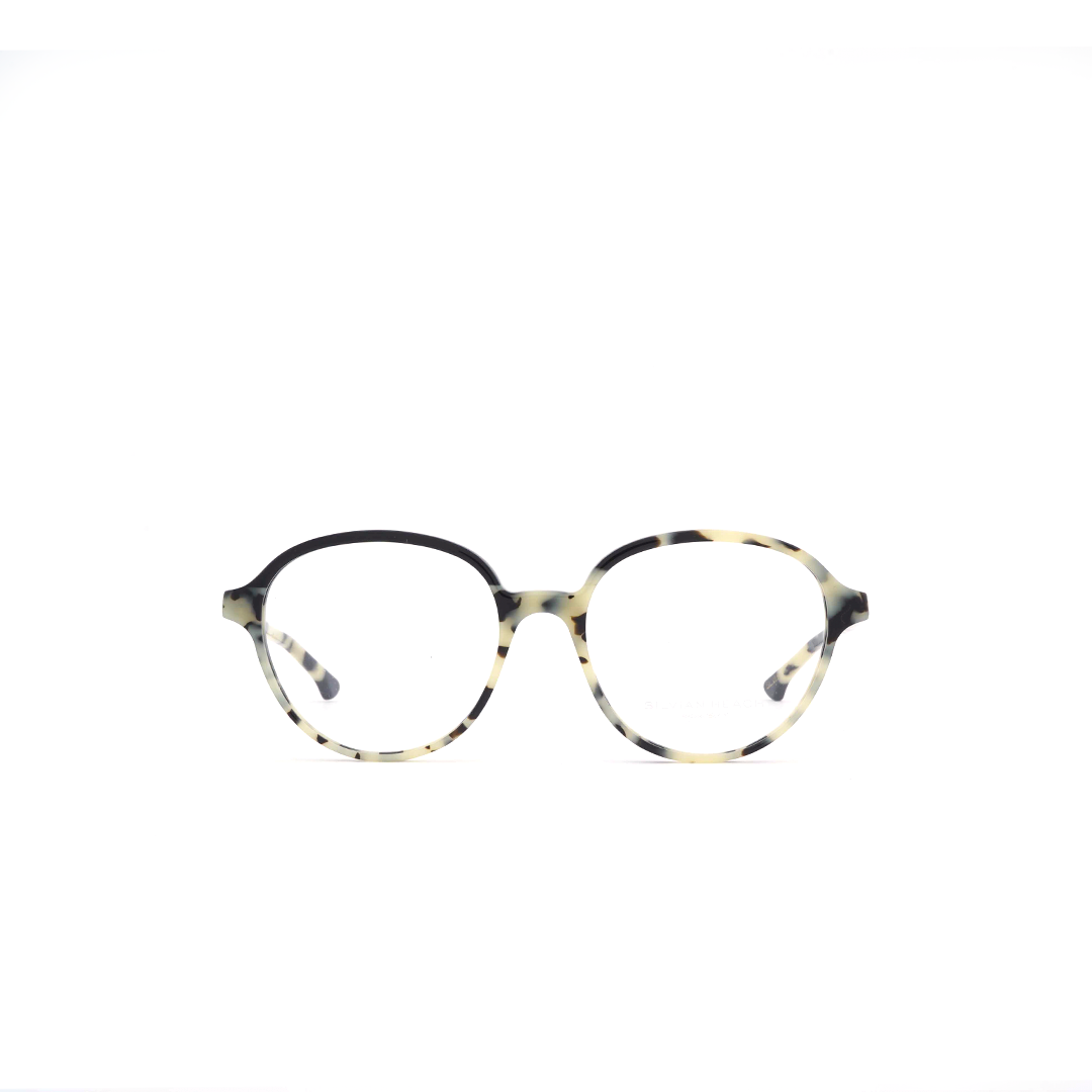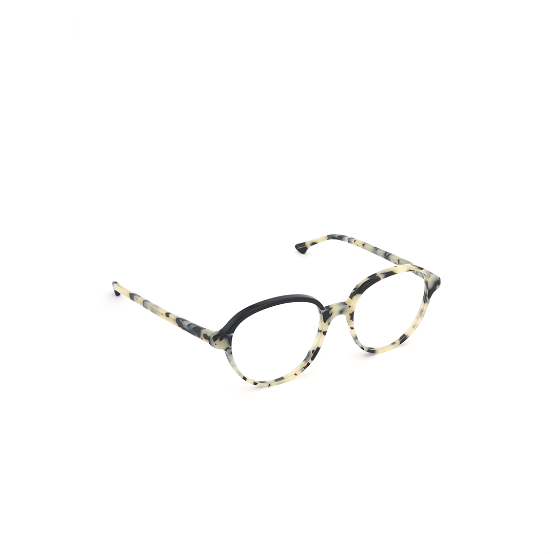 Armazón en color tortoise-amarillo con lente redondo, hecho a mano en Italia.
