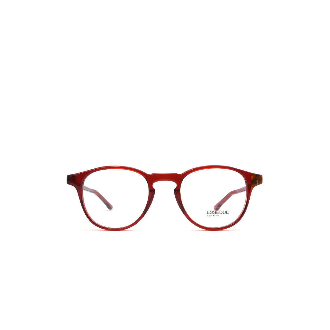 Armazón con lente circular en color rojo, hecho a mano en Italia.