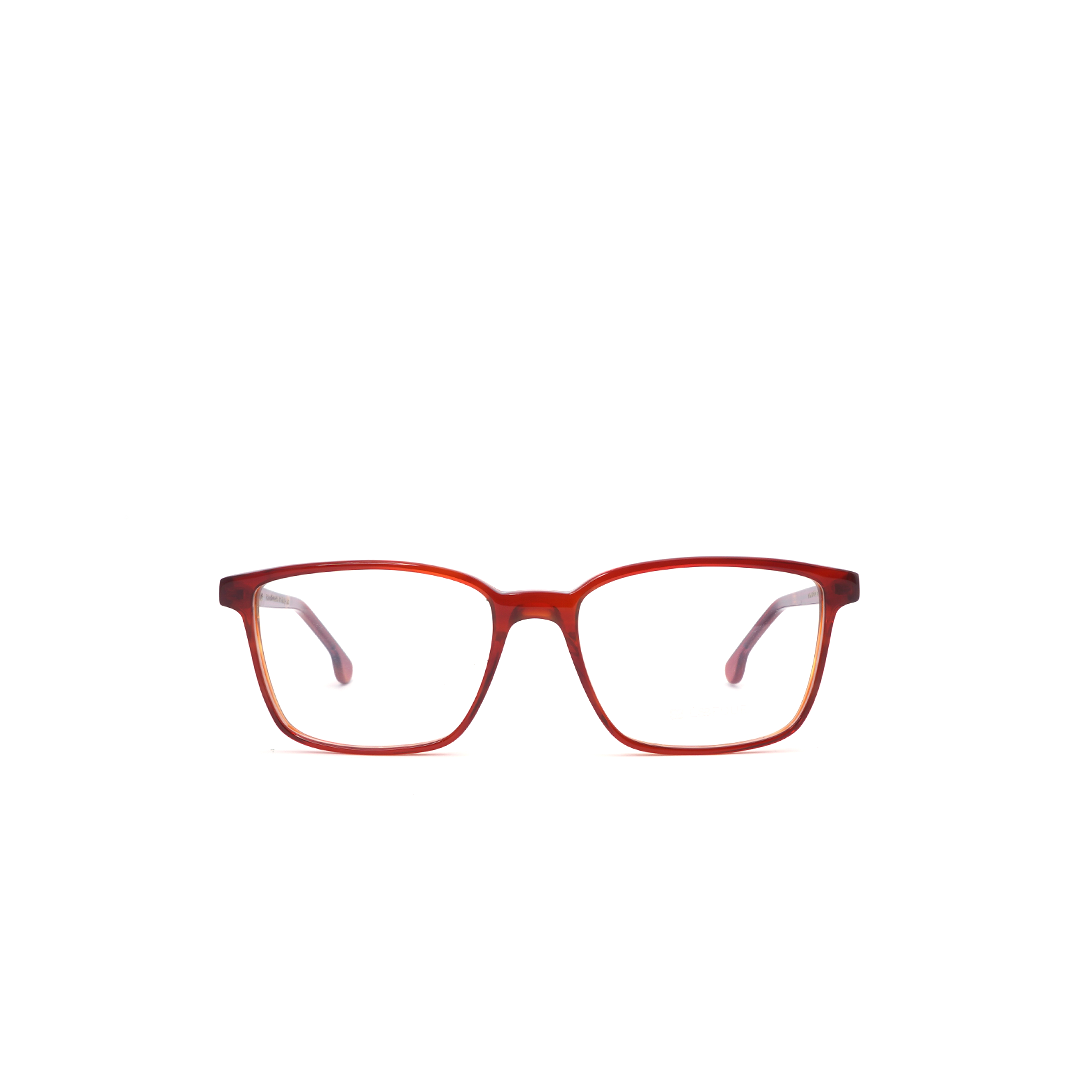 Armazón con lente cuadrado en color rojo, hecho a mano en Italia.
