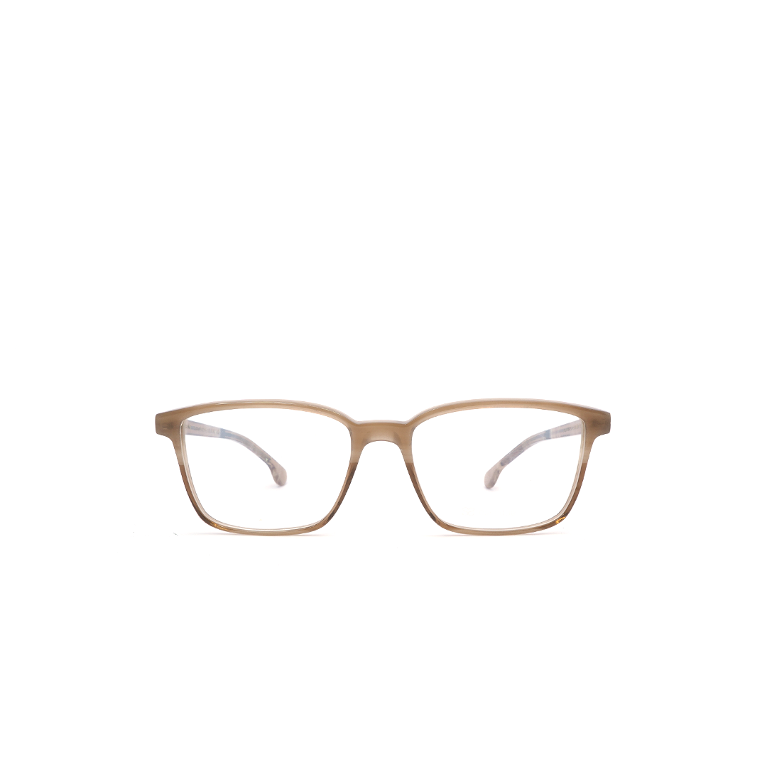 Armazón con lente cuadrado en tonos café claro, hecho a mano en Italia.
